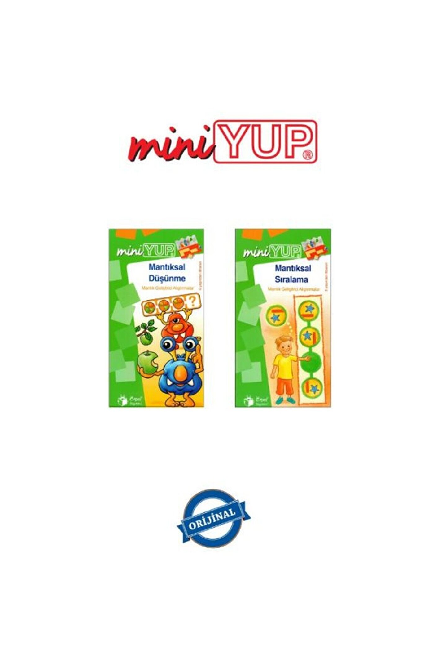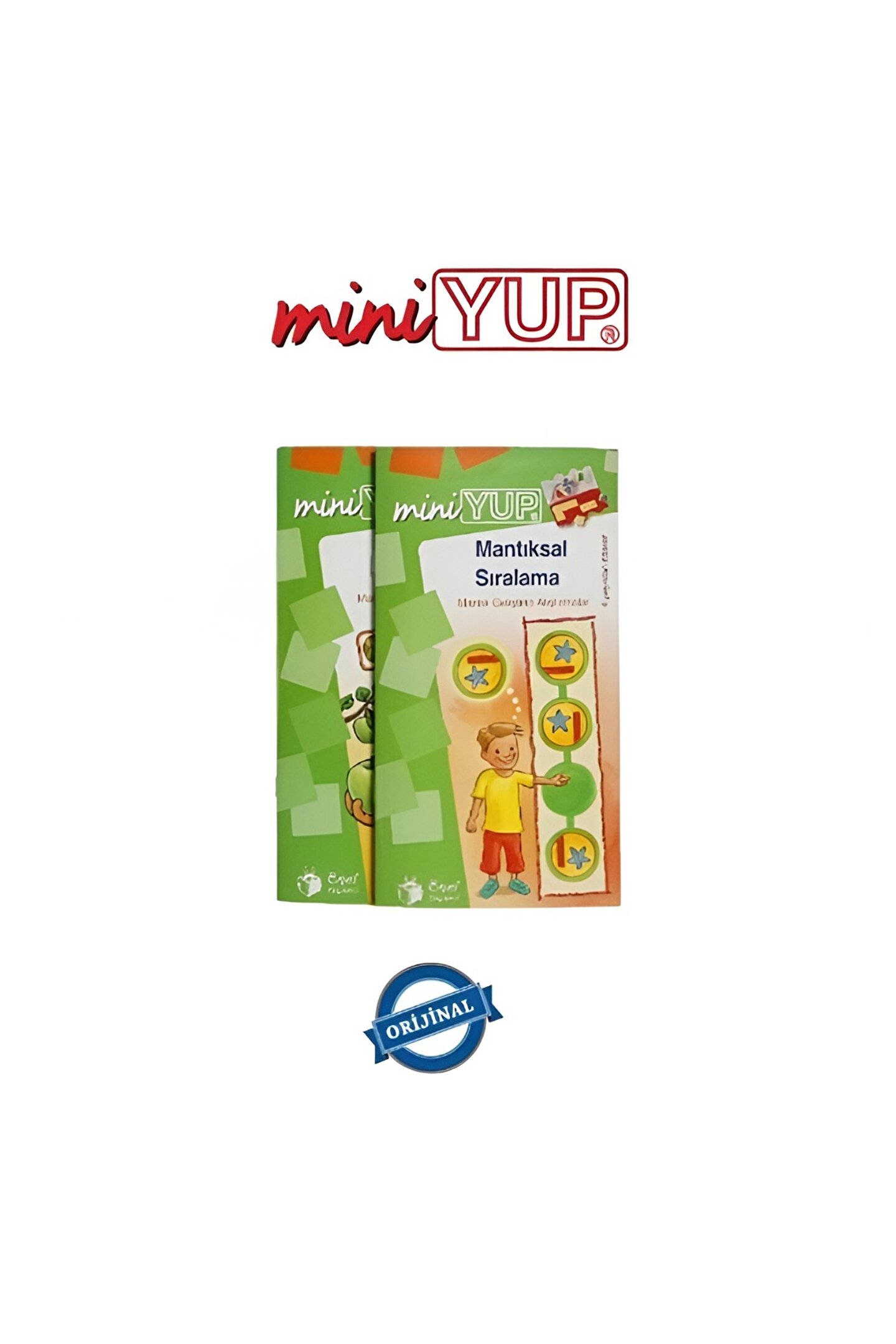 miniYUP 6-8 Yaş Mantık Oyunları Seti (Kontrol Kutusu Dahil Değildir) YUP Eğitim Sistemi’nde orta basamak olup öğrenmenin etkin rol oynadığı MiniYUP Serisi’nin sıralı yaş grubuna göre ilk seti olan ve her birinde 12 soru bulunan toplam 120 etkinliğin bulunduğu 10 etkinlik kitabı ve 1 Kontrol Kutusundan oluşan MiniYUP 5+ Yaş Eğitim Seti’nde, bireysel farklılık faktörü göz ardı edilmeksizin 5 yaş ve üzeri çocukların karmaşık ve renkli nesneleri, eşyaları, şekilleri, desenleri ve motifleri tanımaları; sayma, sayı ve 10’a kadar hesap işlemlerini yapabilmeleri amaçlanmaktadır. Kitapçıklarda yer alan görsel, aynı ya da benzer görseller ile kontrol kutusu adı verilen bir düzenek sayesinde eşleştirilir ve kontrol edilir. Almanya menşeli olup, 50 ülke ve 18 dilde yayınlanan “Oynayarak Öğrenme” felsefesine dayalı bu sistem evrensel olarak LÜK adını alırken, Kanada’da Veritech, Avustralya’da Tutor Systems, Japonya’da Toppan, İsveç’te LYCK, Venezüella’da Arco, Hollanda’da LOCO ve Türkiye’de de YUP adını almaktadır. *Kitapçıkların hepsi miniYUP Kontrol Kutusu ile uygulanmaktadır. SİSTEMİN KAZANIMLARI • El, göz ve beyin koordinasyonu sağlama • Kavrama, algılama ve gözleme yeteneklerini geliştirme • Hassas hareket yeteneğinin güçlendirilmesi • Yaratıcılığa destek ve teşvik • Konsantrasyonun geliştirilmesi • Korku ve yarışma duygusunu yenme • Görsel algılamanın iyileştirilmesi • Özgüven ve sorumluluk duygusunu güçlendirme • Otokontrol sistemiyle kendi başarısını ölçebilme • Kendi aklını kullanarak doğru ile yanlışı ayırabilme ve sabırlı olabilme • Bireysel çalışmayı teşvik etme • Düşündürerek öğretme ve düşünerek öğrenme SİSTEMİN ÖZELLİKLERİ • Bilgilerin çocuğa kodlanarak değil, oyunla verilmesi • Öğrenmenin sıkıcı bir görevden, neşeli bir oyuna dönüşmesi • Oyunu ve öğrenmeyi mantıklı bir şekilde birleştirme • Kolay anlaşılır olma • Sistemli çalışmayı öğretme • Sürprizlere açık olmayı öğretme ve serüven duygusu verme • Yaratıcılığı destekleme ve yaratıcılığa teşvik etme • Öğrenmeye hazır olma istekliliği yaratma • Rekabet baskısını ortadan kaldırıp kendi kendine yarışma yaratma • Kolaydan zora ve basitten karmaşığa öğrenmeyi kolaylaştırma • Bilimsel kurallara dayalı sistematik öğrenme • Kendi kendini sınama ve deneme 2 adet olan kitapçıkların sıralaması ise şu şekildedir: Mantıksal Düşünme Mantıksal Sıralama YUP® nedir? YUP, kelime anlamı olarak "Yap-Uygula-Pekiştir” fiillerinin baş harfleri ile oluşturulmuş, 2010 yılından beri güncelliğini koruyan TPE nezdinden markalaştırılmış bir eğitim sistemidir. Kaynağı Almanca Lernen-Üben-Kontrollieren (Öğren-Uygula-Kontrol Et) fiillerinden oluşturulmuş LÜK markasıdır. YUP, içerisinde 2 yaşından 10 yaşına kadar zeka, dikkat, konsantrasyon, matematik ve yabancı dil gibi temel kazanımlara yönelik alıştırmalar barındıran bir eğitim sistemidir.