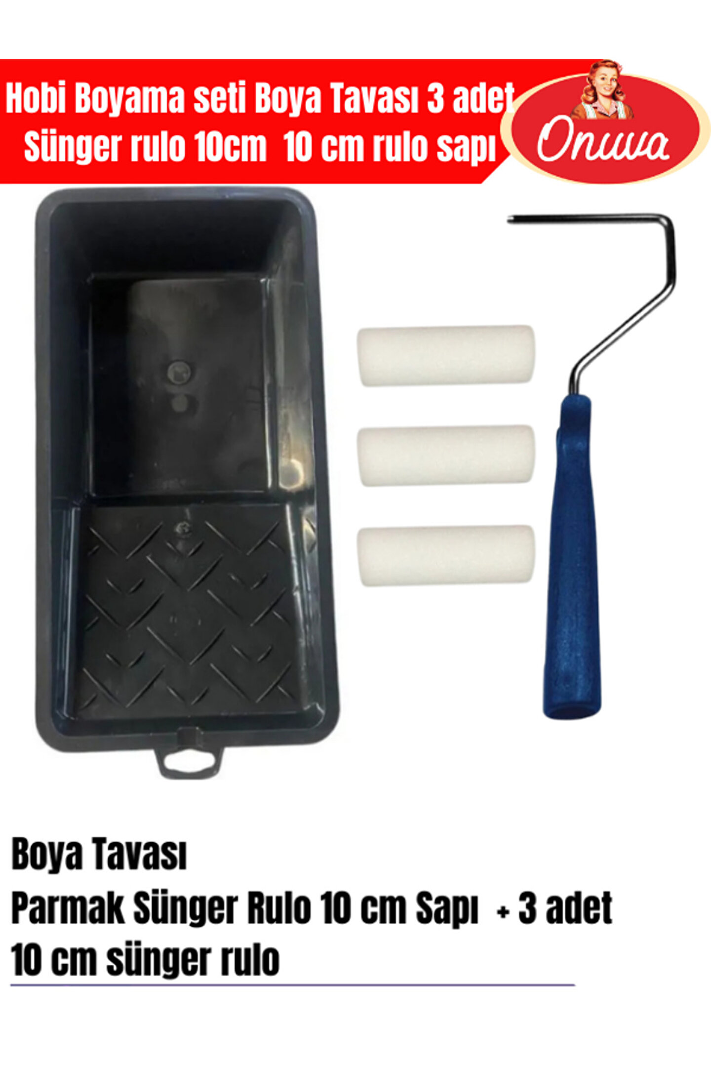 - Hobi boyama seti, sanat ve zanaat projeleriniz için ideal bir seçenektir.; - 10 cm çapında üç adet sünger rulo, detaylı ve hassas boyama işlemleri için mükemmel bir araçtır.; - 10 cm rulo sapı, boyama sırasında konforlu bir tutuş sağlar ve uzun süreli kullanımlarda bile yorgunluğu azaltır.; - Farklı boyutlardaki sünger rulolar, çeşitli yüzeylerdeki detayları kolayca işlemenize olanak tanır.