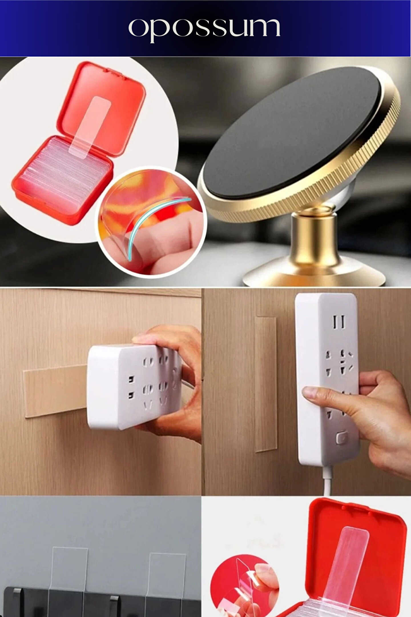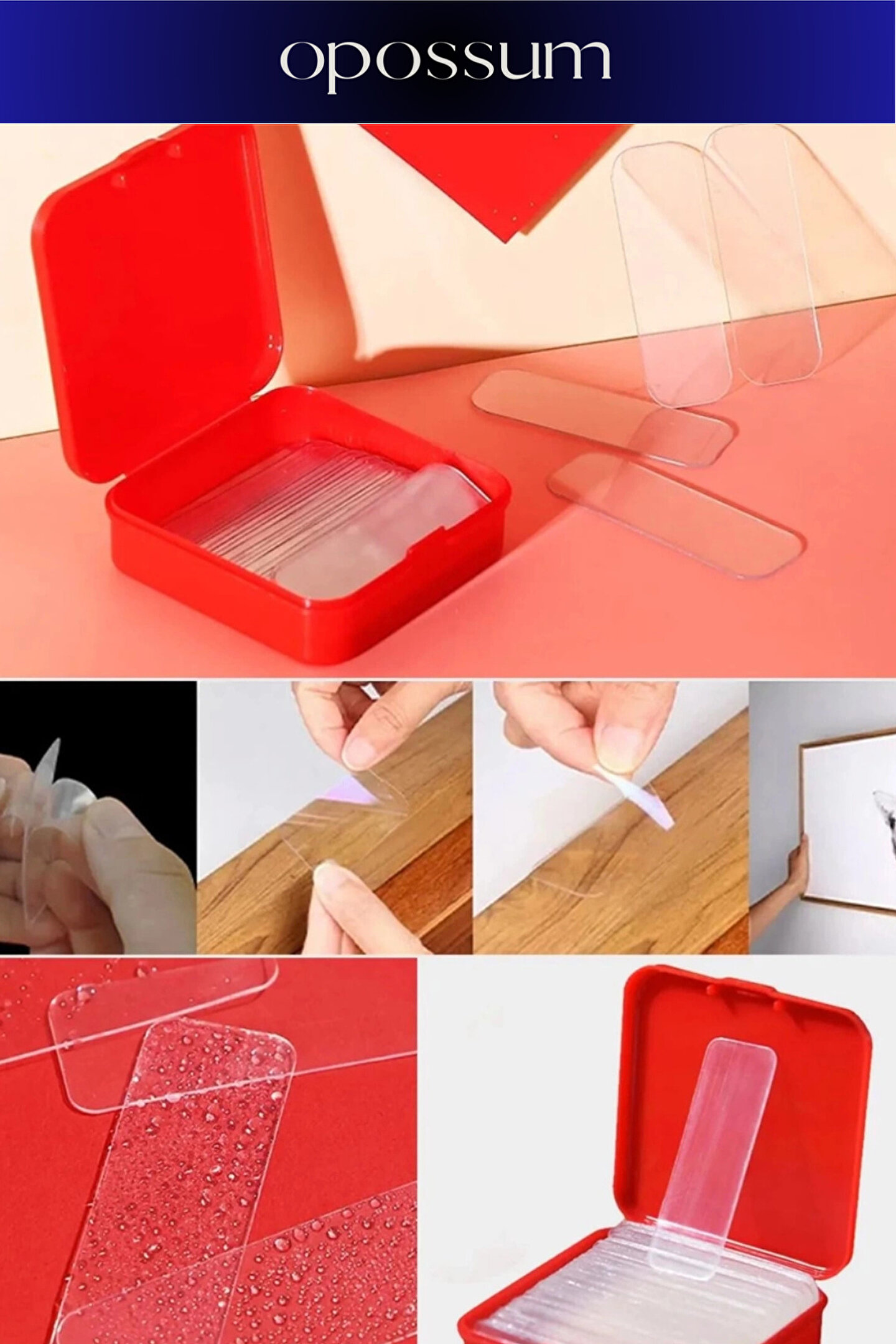 • Opossum Özel Üretim Süper Güçlü Kolay Çıkarılabilir Çok Amaçlı 60 Parça Çift Taraflı Şeffaf Bant 1 Adet