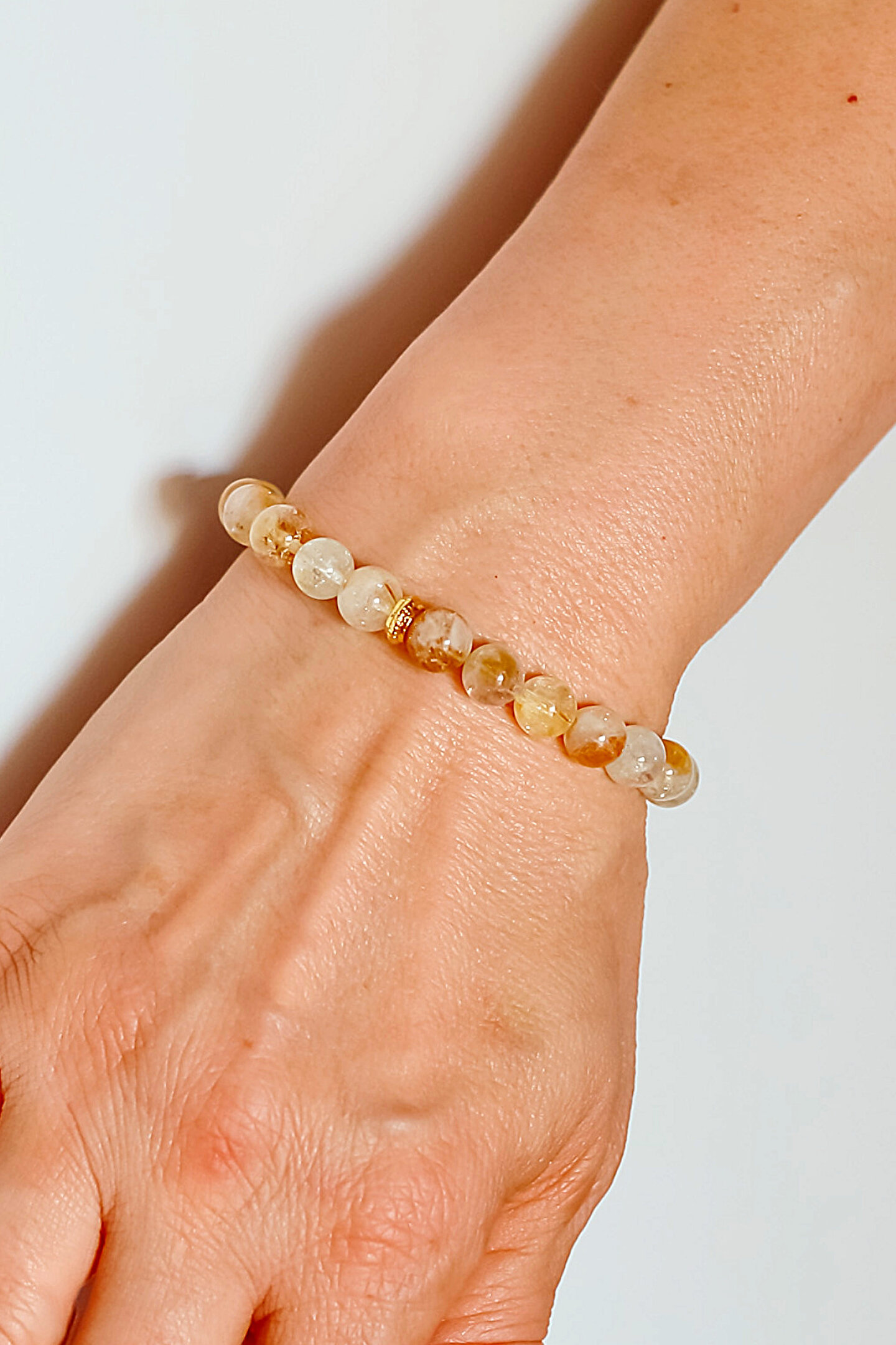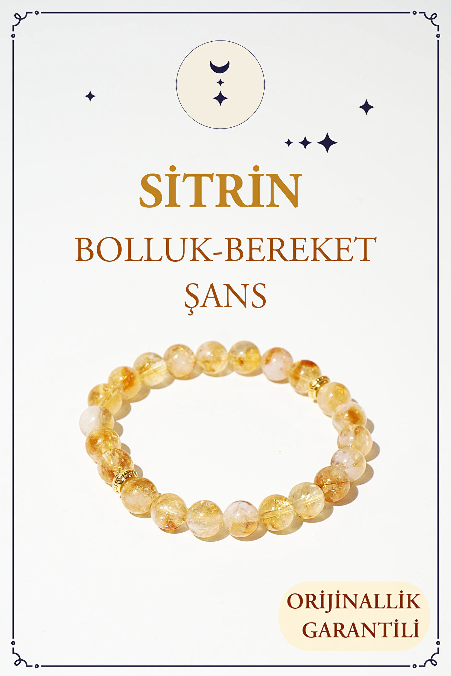 - Pozitif enerji deposu olarak bilinen sitrin taşının faydalarını bileğinizde hissedin.; - Her yaş grubuna hitap eden, unisex tasarımıyla herkesin kullanımına uygun.; - Tek ebat seçeneğiyle standart boyutlarda rahatça takılabilir.; - Doğal renk tonlarıyla şıklığınızı tamamlayacak zarif bir görünüm sunar.; - Kaliteli doğal taş malzemesi sayesinde uzun süreli kullanım vaat eder.; - Güneş Sarısı rengi ile modern ve sofistike bir stil oluştururken, bileğinizdeki pozitif enerjiyi yansıtır.