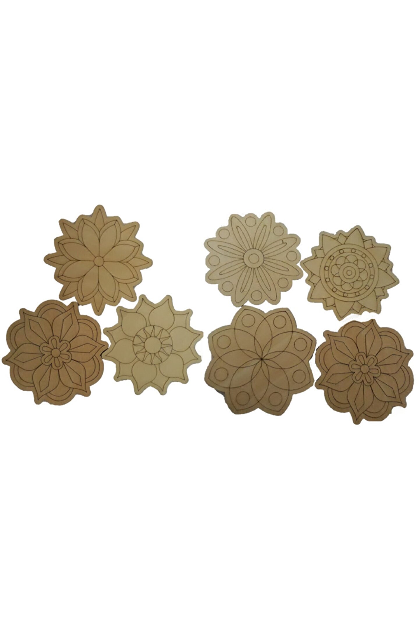 Paket setimiz içerisinde farklı figürlerden oluşan toplamda 7 adet 13,5x13,5 cm boyutlarında mandala figürlü ahşap kesim ve 5 adet farklı renklerden oluşan sağlıklı ahşap boyası tüpü ve 1 adet boyama yapmak için boya fırçası ve 24x16x6 cm boyutlarında ahşap boya seti kutusu mevcuttur.Yine 1 adet kitap ayracımız setimize dahil