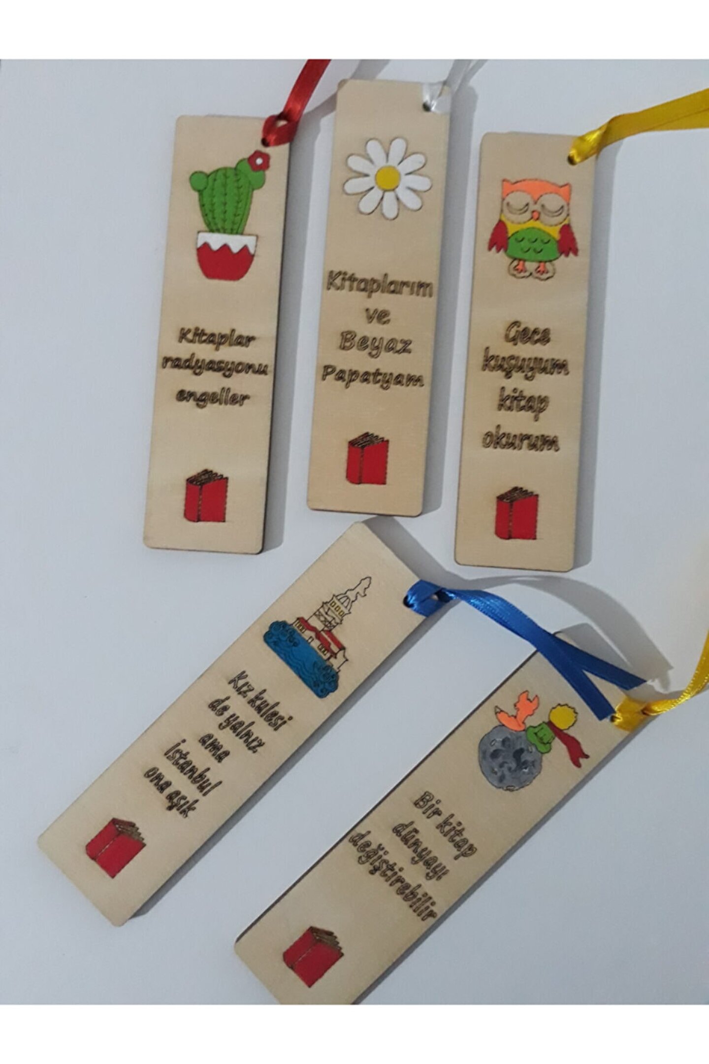 Ayraç takımımız 5 adet 15x4cm ayraçtan ve sipariş ismine özel olarak kaligrafi sanatıyla yazılmış 22x30cm kaligrafi fon kartonundan oluşmaktadır; Tamamen ahşap malzemeden olup figürlü kısımlar ahşap boyası ile elde boyanmıştır; Boya su bazlı ahşap boyası olup sağlığa zararsızdır; Ayraç koleksiyonerlerine,kitap kurtlarına ve okuma alışkanlığı edindirmeye çalıştığımız çocuklarımız için motive edici şirinlikte özel olarak tasarlanmıştır;