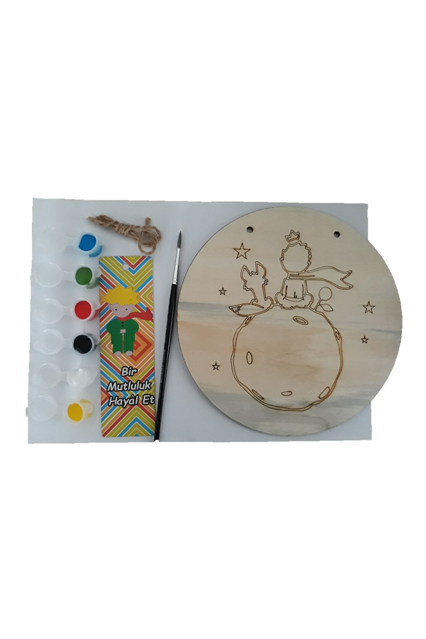 CANLI RENKLERİN:İnsanlar üzerindeki olumlu etkisiyle terapi hissi yaratır.Ahşabın doğallığını yaşam alanına taşır.Keyifli zaman geçirmeni sağlar,yaratıcığını ortaya çıkarır. ; SEVGİ DOLUBİR HEDİYE:Kendine,ailene ve arkadaşlarına verebileceğin özel ve farklı bir hediyedir. ; YAŞAM ALANINI ÖZELLEŞTİR:Tercih edeceğin desendeki ahşap boyama kitisanatın ve sana özel olanı özelleştirmenin,ruhunu yansıtmanın kapısını aralar. ; ÇOCUKLAR İÇİN EĞLENCELİ:Çocuğunuzun yaratıcılığını geliştirmek ve birlikte eğlenceli vakit geçirebilmek için tercih edebileceğiniz bir üründür. ; PAKET İÇERİĞİ:Özel olarak tasarlanmış 4-6 mm kalınlığında ve 20 cm çapında ahşap tuval,6 farklı renkte akrilik boya paleti hasır asma ipi 1 adet standart boyama fırçası 1 adet küçükprens kitap ayracı 1 adet sipariş ismine özel kaligrafi sanatıyla yazılmış fon kartonu gönderilir ; UYGULAMA ŞEKLİ:Fırçalar nemli olursa boya daha güzel yayılacaktır.Boyamaya içten başlayıp dışa doğru devam edersen boyanın dışardan içeriye bulaşmasını engellemiş olursun. ; UYARILAR:İçeriğindeki akrilik boyalar sağlığa zararlı değildir.Cilde bulaşması durumunda su ile çıkarılabilir.Boyaların göz ve ağız ile temasından kaçınınız.Ahşap detay çubuğu sivri uçludur ve çocukların kullanmaması tavsiye edilir.Çocukların bir yetişkin gözetiminde boyama yapması gerekmektedir. ; MEMNUNİYET GARANTİSİ:Mutluluğunu düşünerek tasarladığımız ürünlerde memnuniyetine önem veriyoruz.MEMNUNİYET GARANTİSİ ile birlikte ÜRÜN GARANTİSİNİ de sunuyoruz.Her türlü soru ve görüşlerin bizler için çok değerli.Bizimle Trendyol üzerinden iletişime geçmen yeterli olacaktır. ; Tüm Boyama Setlerini AYNI ÖZEN VE DİKKATLE HAZIRLAYIP hızlı şekilde kargo firmasına teslim ediyoruz. ; Yorum ve puanlaması olmayan boyama setlerini de GÖNÜL RAHATLIĞIYLA tercih edebilirsin. ;