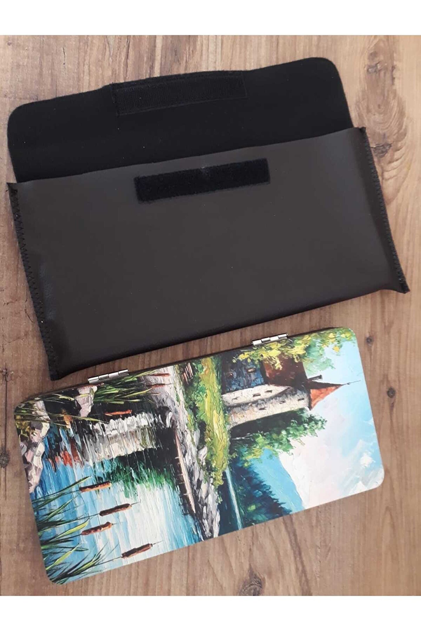 Mini Tavla Seyahat Tavla Cep Tavla 24x24 Özel Deri Kılıflı-MANZARA