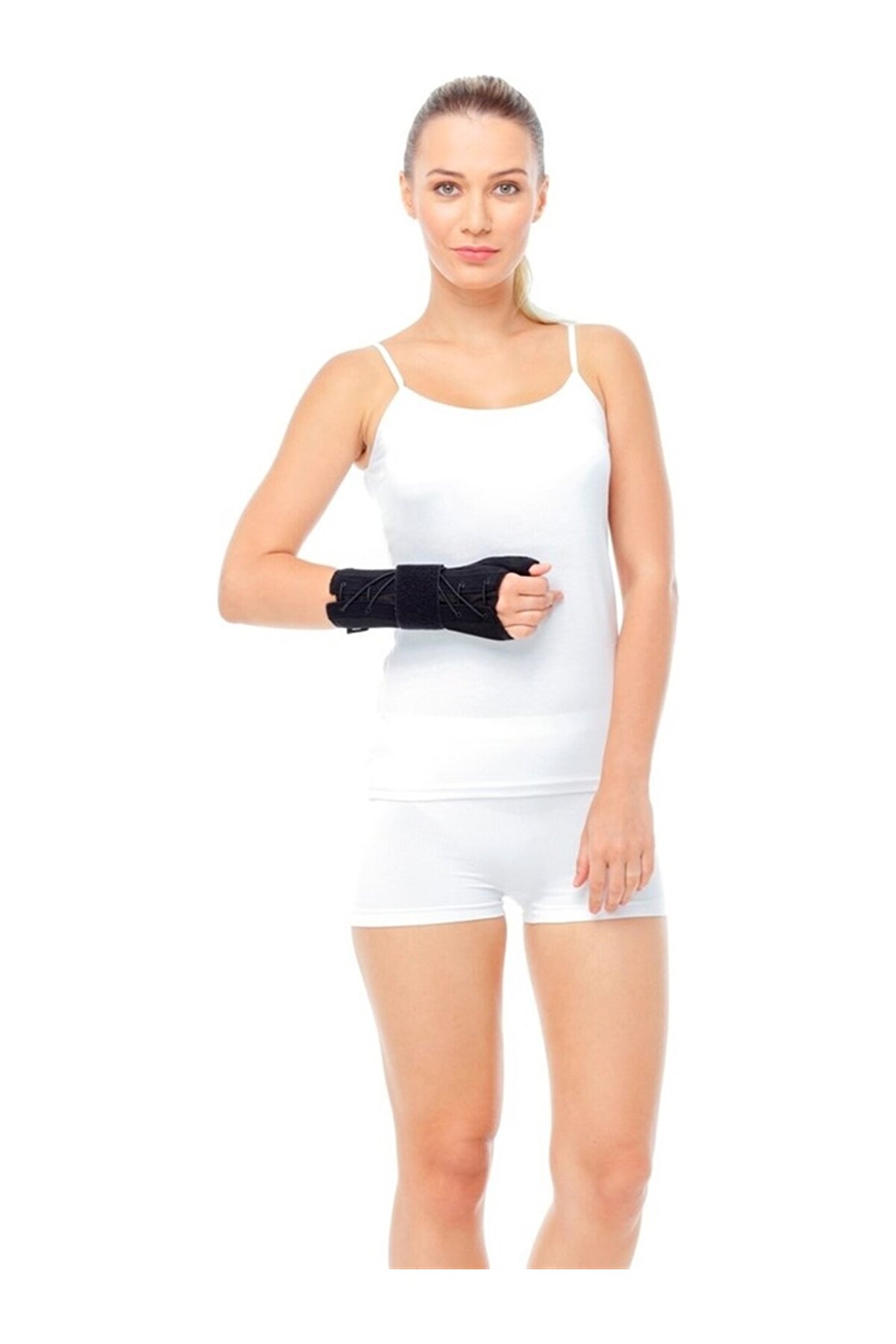 ORLEX E75 BAŞ PARMAK DESTEKLİ BAĞCIKLI EL BİLEK ATELİ SOL EL AÇIKLAMALAR Hava alabilen delikli kumaştan üretilmiştir.; El bileği volar yüzde, anatomik olarak şekillendirilmiş alüminyum desteği vardır.; Bilek çevresinde bağcıklı sistemde stabili zasyonu sağlayan bandajı mevcuttur.; Kullanımı ve uygulaması kolaydır.; ENDİKASYONLAR 1-Karpal Tünel ve de quervain beraber olduğu durumlar.; 2-De quervain tenosinoviti.; 3-El bileğinin ve baş parmağın ağrılı durumlarında.; 4-Yaralanma ve ameliyat sonrası.; 5-Kırıklarda alçı sonrası.;