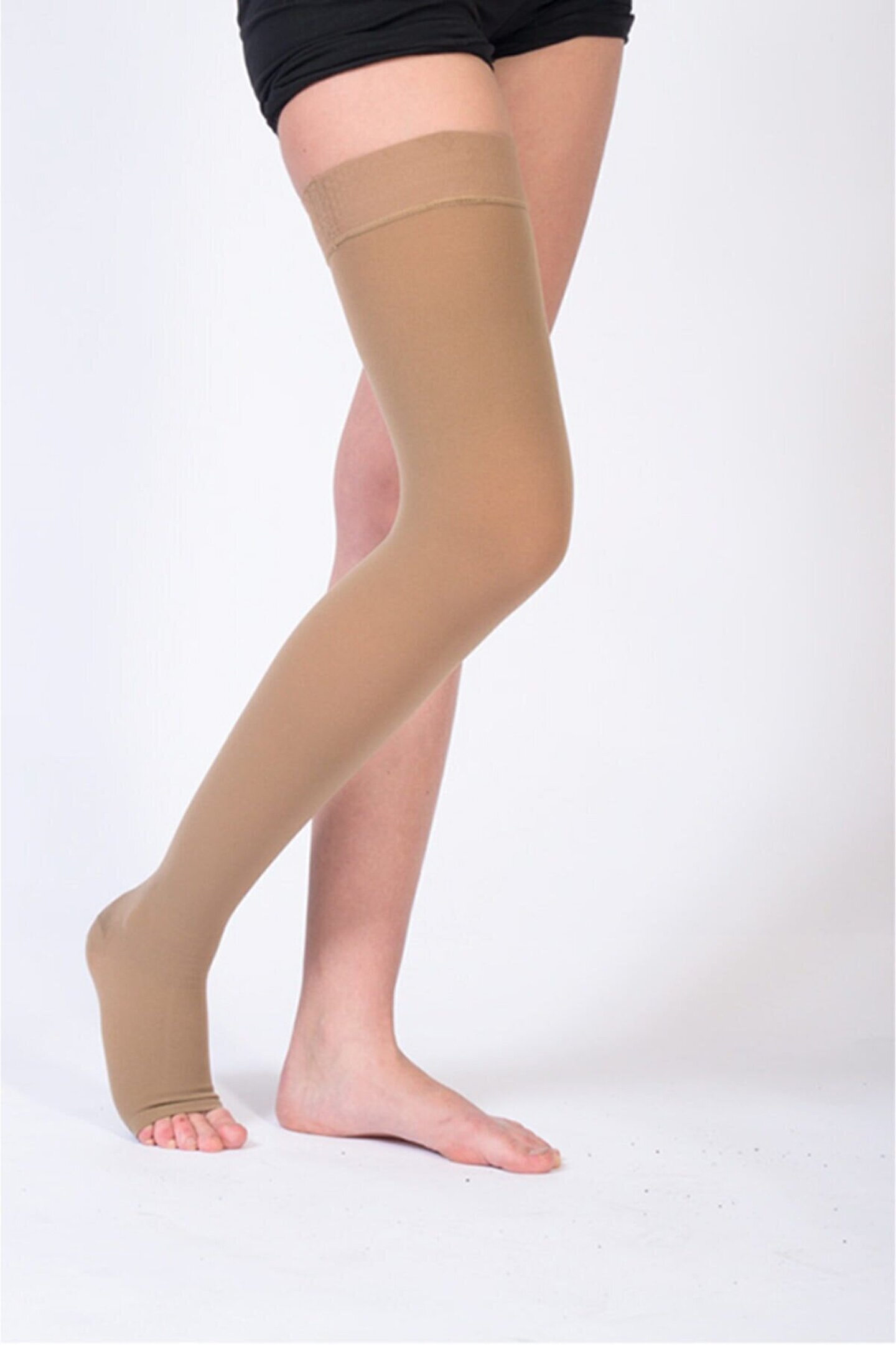 Diz Üstü Çorabı (açık Burun) Yüksek Basınçlı Silikon Bantlı Bej Ref 901