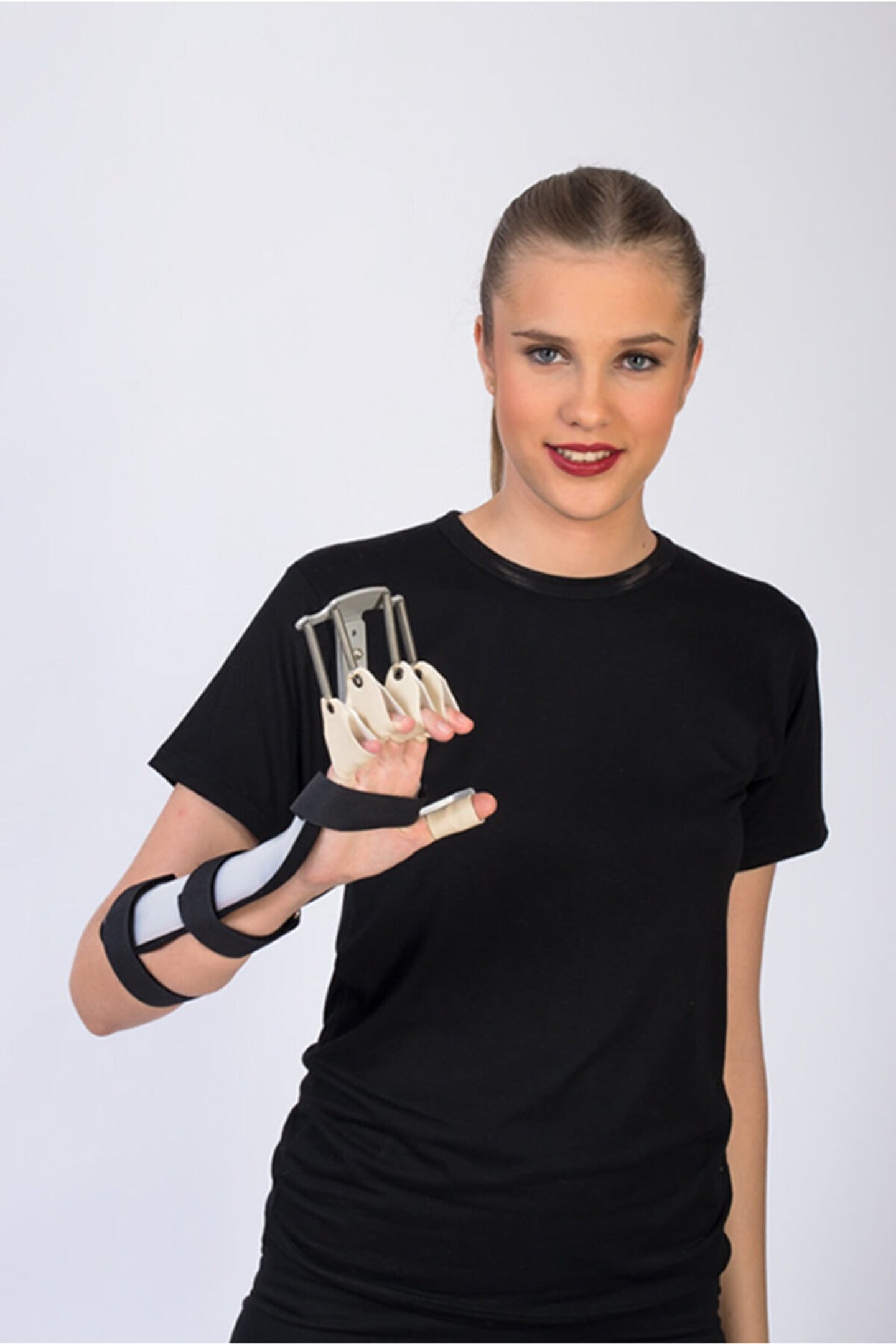 Termoplastik malzemeden üretilmiş olup iç yüzeyi havlu kumaş ile kaplı el ve bilek ortezidir. ; Aktif parmak fileksiyonuna olanak sağlar. ; Bilek ve parmakları pasif olarak ekstansiyonda tutar.;