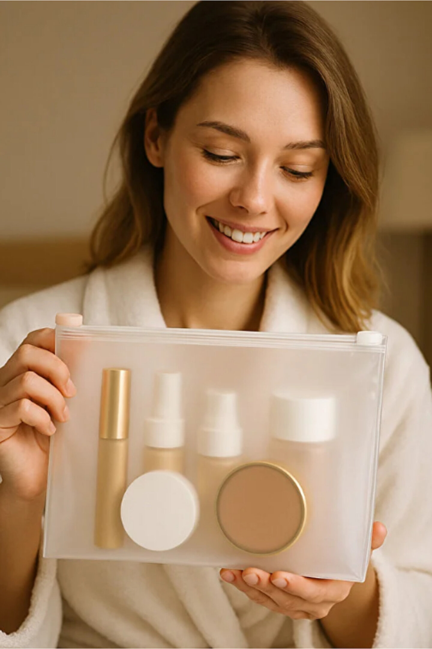 Dayanıklı, şeffaf ve modern tasarımıyla dikkat çeken bu fermuarlı makyaj çantası; 30x20 cm ölçüsü sayesinde hem büyük hem küçük kozmetik ürünlerinizi düzenli bir şekilde saklamanıza yardımcı olur; şeffaf buzlu yüzeyi sayesinde içindekileri kolayca görebilir ve aradığınız ürünü anında bulabilirsiniz; suya dayanıklı malzemesi ile banyo, plaj veya seyahat sırasında ürünlerinizi güvenle korur; hafif ve esnek yapısı sayesinde çantanızda, valizinizde veya çekmecenizde fazla yer kaplamadan taşınabilir; fermuarlı üst kısmı kolay açılıp kapanır ve ürünlerinizi dökülme riskine karşı güvenle muhafaza eder; makyaj fırçaları, parfüm, krem, serum, deodorant, oje, tırnak makası, saç tokası gibi kişisel bakım ürünleri için ideal kullanım sunar; sade ama şık tasarımıyla hem kadınlar hem erkekler için uygundur; seyahatlerde düzenli ve hijyenik bir taşıma çözümü sağlar; evde, işte, tatilde veya spor salonunda rahatlıkla kullanılabilir; kolay temizlenebilir yüzeyi sayesinde uzun ömürlüdür; elde ılık suyla ve yumuşak bezle silinerek temizlenmesi önerilir; çamaşır makinesinde yıkamayınız ve kimyasal temizleyici kullanmayınız; doğrudan güneş ışığında uzun süre bırakmayınız; tamamen kuruduktan sonra kapalı şekilde muhafaza ediniz; günlük kullanım için pratik, estetik ve fonksiyonel bir organizer arayanlar için mükemmel bir seçimdir.