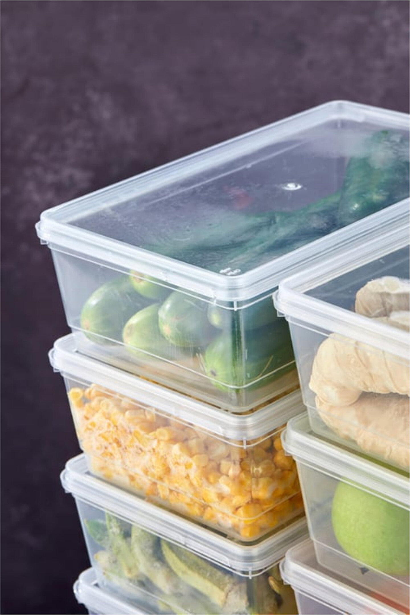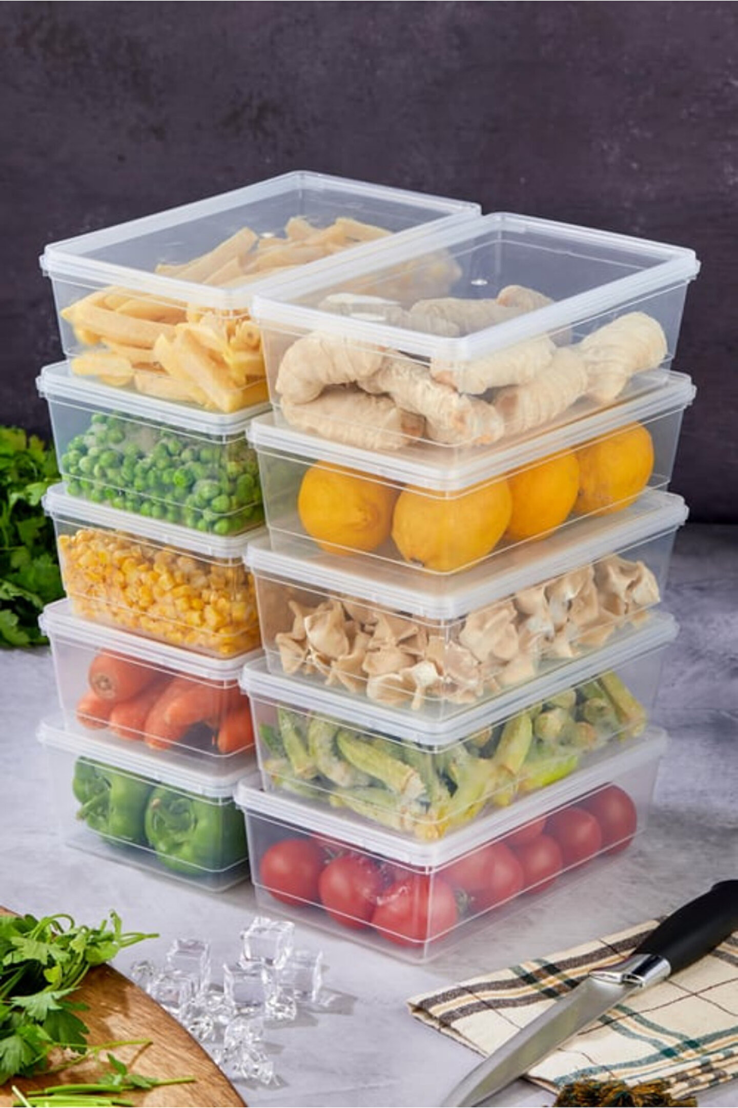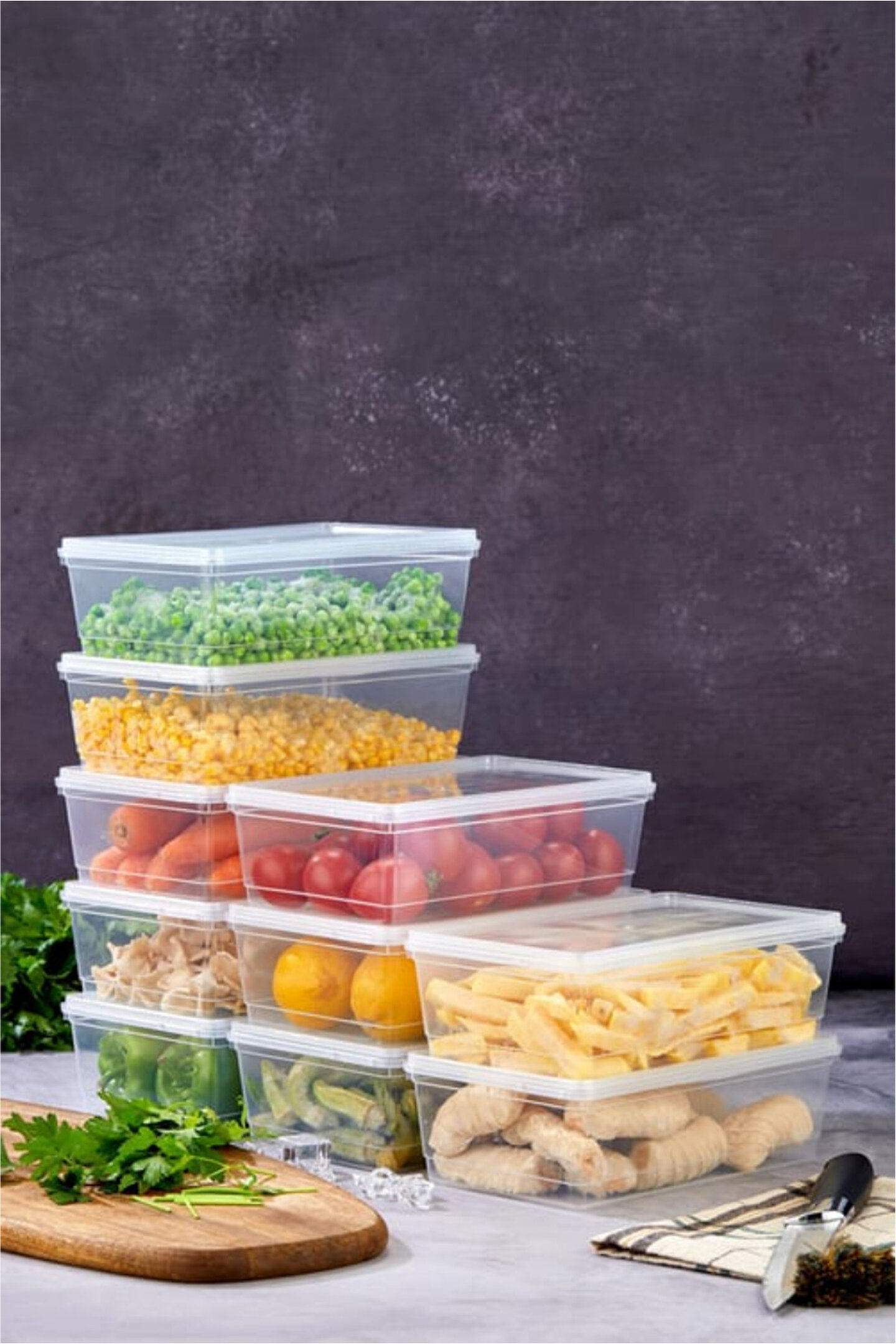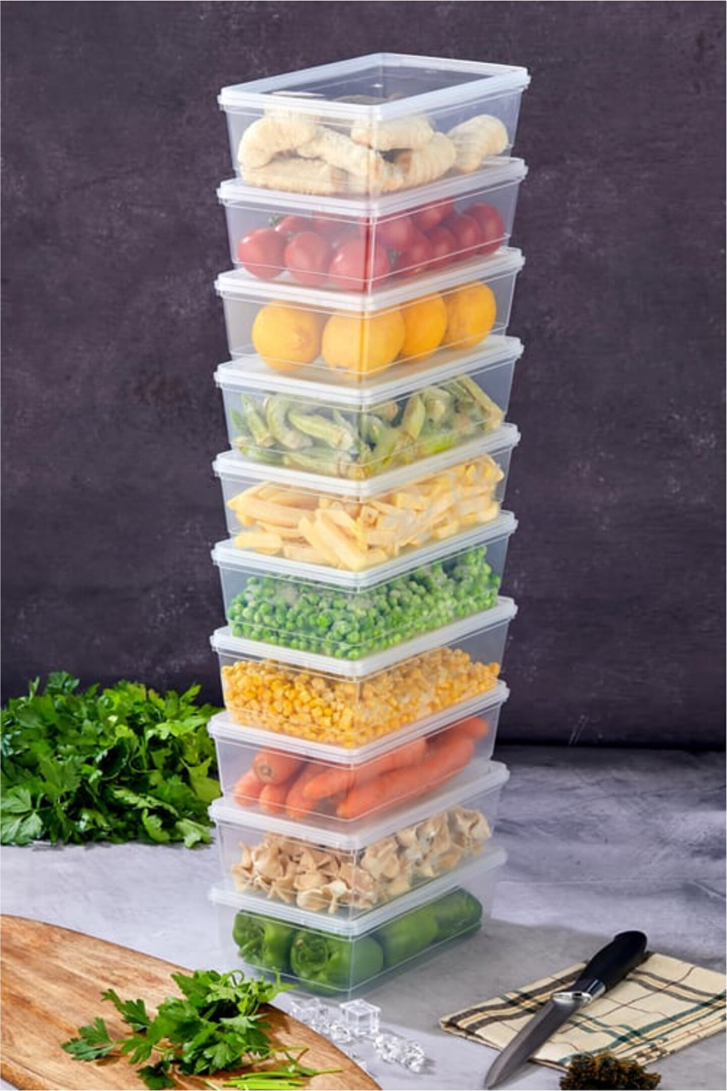10’lu Kapaklı Saklama Kabı Seti, gıdalarınızı taze ve düzenli saklamanızı sağlar.; ; 2 litrelik geniş hacmiyle sebze, meyve, bakliyat, yemek artıkları ve soslar için idealdir.; ; Şeffaf tasarımı sayesinde içeriği kolayca görebilir, buzdolabı ve derin dondurucuda düzenli bir kullanım elde edebilirsiniz.; ; Sızdırmaz kapak yapısı, koku karışımını önler ve hijyenik saklama imkânı sunar.; ; Dayanıklı plastik malzemesiyle uzun ömürlüdür, bulaşık makinesinde yıkanabilir.;