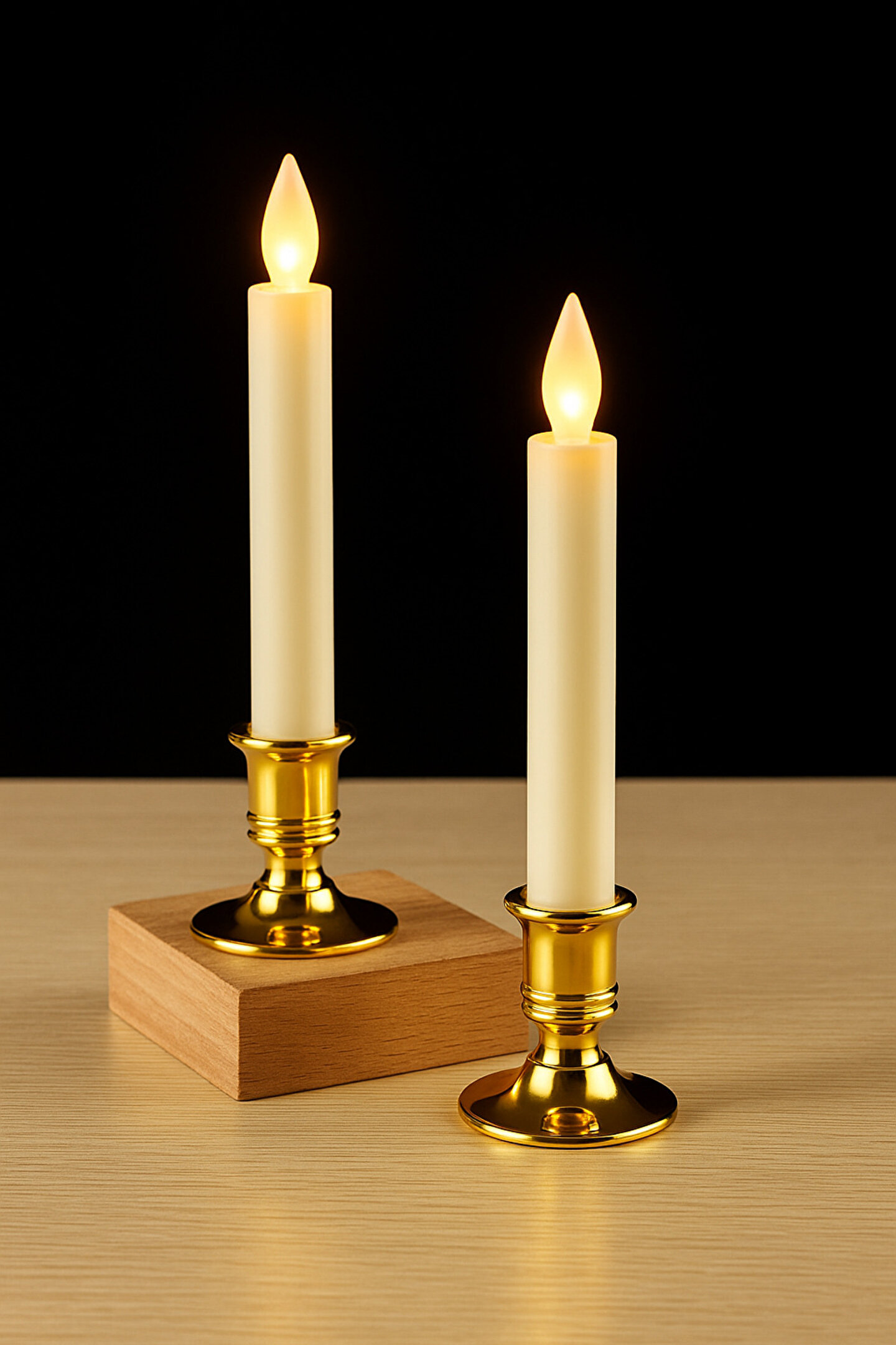 Altın şamdanlı LED mum 2’li set; gerçek alev efektiyle sıcak ve romantik ambiyans; alevsiz, duman çıkarmaz, kokusuz güvenli kullanım; pille çalışan uzun ömürlü ışık; salon, yatak odası, yemek masası ve sehpa dekoru için şık görünüm; düğün, nişan, doğum günü, yılbaşı ve özel davetlerde atmosfer tamamlayıcı; modern ve klasik dekorlarla uyumlu zarif tasarım; çocuklar ve evcil hayvanlar için daha güvenli alternatif; kaliteli malzeme ve parlak metal şamdan detayları; loş ışıkta fotoğraflarda estetik sonuç; kolay taşınır ve konumlandırılır; is yapmaz, temizlik gerektirmez; priz gerektirmez, kablosuz kullanım rahatlığı; hediye edilmeye uygun şık set; minimalist, otel ve kafe konseptlerine uygun; romantik akşam yemekleri ve dinlenme köşeleri için ideal; iç mekân dekorasyonunda sıcak beyaz ışık etkisi; uzun süre kullanılmadığında pilleri çıkarıp saklayın; direkt güneş ve aşırı ısıdan uzak tutun; sade ve premium dekoratif aydınlatma çözümü.;