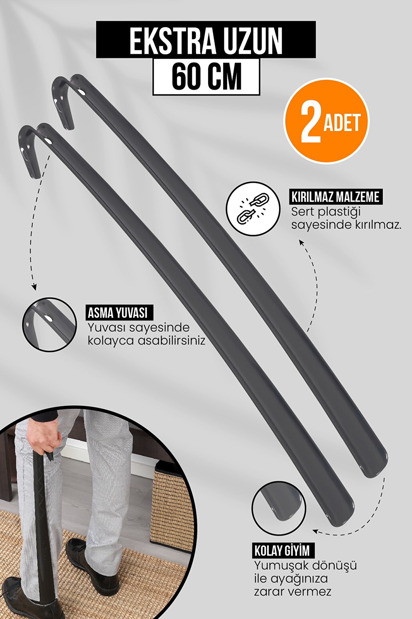 Paket içeriği 2 Adet Antrasit Siyah Ekstra Uzun Ayakkabı Çekeceği 60 Cm ; Kırmızı, Beyaz ve antrasit gri rengimiz de mevcuttur.; Dilerseniz Orvila mağazamızdan ayakkabı çekeceği aramasıyla temin edebilirsiniz.; ; Yumuşak dönüş ile kolay giyilir.; ; Sert kırılmaz plastiktir.; ; Setin içinde: 2 adet uzun ayakkabı giyme çekeceği ile rahat bir şekilde ayakkabılarınızı veya çizmelerinizi rahatça giyin.; ; Nazikçe: Yaşlılar ve eklem problemleri olan insanlar için ideal – Ayakkabı giyme yardımcısı plastik kerata çekeceği eğilmeden kullanın.; ; Asmak için: Büyük ayakkabı kaşıklarının asmak için bir halkası vardır – gardırop içinde kapı kolunda sürekli olarak elinizin altında olur.; ; Sağlamlık: Modern ayakkabı çekeceği son derece sağlamdır – Uzun süreli kullanım için plastik ayakkabı kaşığı.; ;