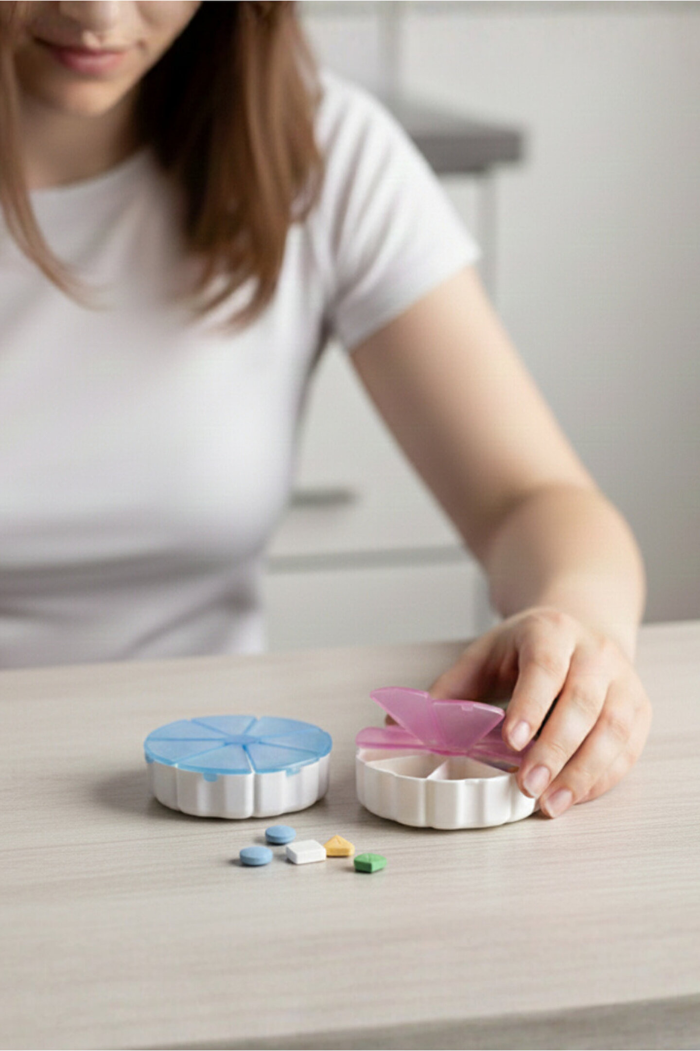Haftalık İlaç Kutusu Düzenli olarak kullanmak zorunda olduğunuz ilaçlarınızı yanınızda kolayca ve gün gün ayırarak taşıyabileceğiniz harika bir ürün sizleri bekliyor Haftalık İlaç Günler Ürünün Üstünde İngilizce Olarak Yazmaktadır. ; Fakat herkesin anlayabilmesi ve Her milletten kişilerin kullanabilmesi için 1.2.3.4.5.6.7. ; gün diye üstünde belirtilmekte bu sayede herkesin kullanabileceği ve anlayabileceği düzeye gelmektedir. ; İlaç Saklama Kutusu ! 7 farklı bölmeden oluşan Haftalık İlaç Kutusu , dönen kapak sayesinde açılan mekanizmaya sahiptir. ; Günlere ayrılmış bölmeler sayesinde, ilacınızın gününü aksatmadan rahatlıkla sağlığınızı kontrol altına alabilirsiniz. ; Kolayca doldurabilir ve içinden kolayca ilaç alınabilir. ; Haftalık İlaç Kutusu kapağı 360 derece dönebilmektedir. ; Şeffaf kapaklı tasarımı ile içindeki görebilir ve varsa kiri fark edebilirsiniz. ; Kompakt boyutu ile çantanıza ya da cebinize sığacak. ; Sağlığa zararlı olmayan plastik malzemeden üretilmiştir. ; Ürün Özellikleri: Haftanın 7 günü için 7 ayrı bölme bulunmaktadır. ; Kutunun etrafında haftanın 7 günü yazmaktadır. ; Bu sayede hangi gün ilacınızı içmeniz gerektiğini kolaylıkla öğrenebilirsiniz. ; Pembe ve Mavi Renkleri Mevcuttur. ; Stok durumuna göre karışık renklerden gönderilecektir. ; sipariş verdikten sonra renk belirtirseniz yardımcı olabiliriz. ; Bir mesaj gelmez ise renk gözetmeksizin gelecektir. ; Ürün Ölçüsü: Çap: 10,5 cm Yükseklik: 2,5 cm Paket İçeriği: 1 Adet Haftalık İlaç Kutusu Stok Durumuna göre karışık renklerde gönderilmektedir.;