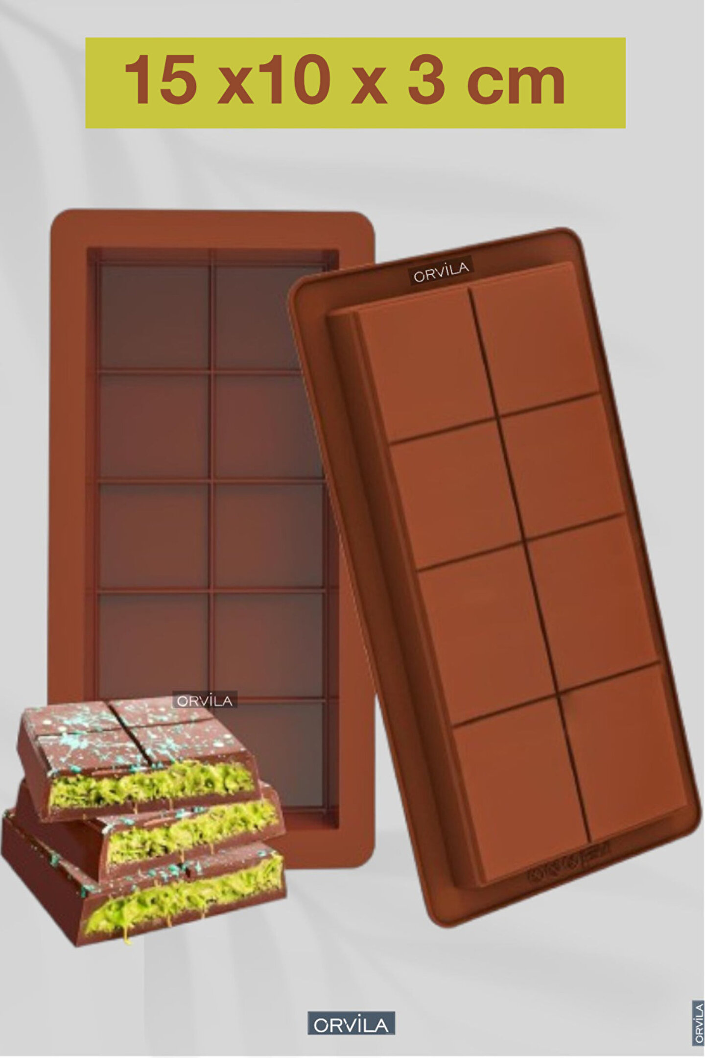 Orvila 2 Adet Kare Çikolata Kalıbı Dubai Çikolatası Yapma Kalıbı |Silikon 8li Yapışmaz Bar