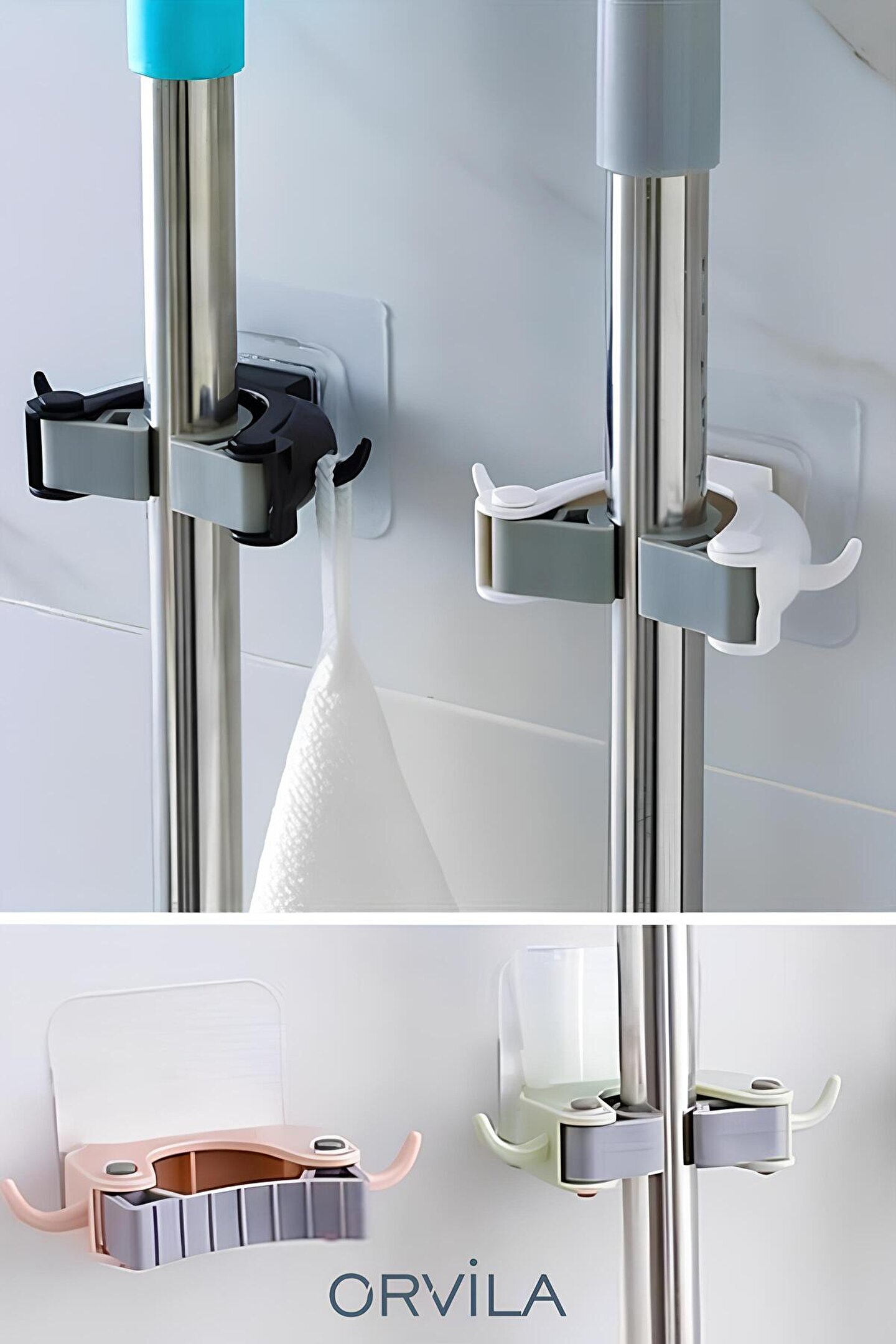 Orvila 2 Adet Kendinden Yapışkanlı Banyo Mop Askısı Organizeri Fırça Sapı Düzenleyici