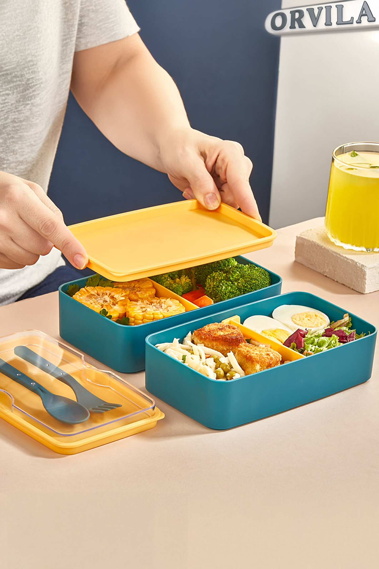 Orvila 2 Kat Yemek Saklama Kabı Beslenme Kutusu Seti - Sporcu Diyet Öğrenci Fitness Okul Işyeri Sefer Tası