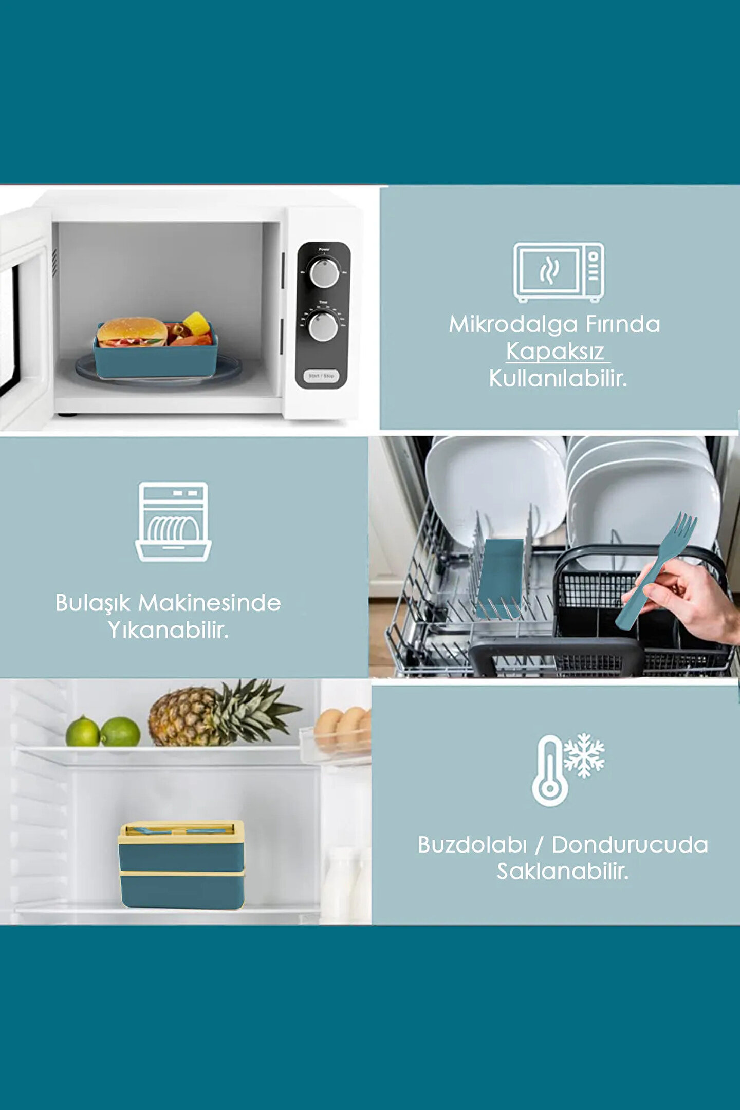 Genişlik: 19 Cm ; ; En: 11 Cm ; ; Yükseklik: 11 Cm ; ; Her Bir Kat : 5 Cm ; ; Mikrodalgaya uygundur. ; ; Bulaşık makinasında yıkamaya uygundur. ; ; İnsan sağlığına zararlı herhangi bir madde içermemektedir.BPA İçermez. ; ; 2x Gövde - 2x Seperetör - Kapak - Çatal - Kaşık - Kristal Kapak - Lastik olmak üzere 9 parça olarak gelmektedir. ; ; Ara parça sayesinde farklı yemeklerinizi saklayabilirsiniz.2 Kat içinde ara parça ( seperetör ) bulunmaktadır. ; ; Kamp için uygundur. ; ; Okullarda beslenme kabı - lunch box - yemek kabı ve saklama kabı olarak kullanılmaktadır. ; ; Ofiste, işyerlerinde yetişkinler kullanmaktadır. ; ; Sıvı gıdalarınızı muhafaza etmeniz için dik değil , yatay bir şekilde çantanıza koymanız tavsiye edilmektedir. ; ; Türkiye'de üretilmiştir. Yerli Malı ; ; Çatal ve Kaşıkta bulunan delik sayesinde kapağa tutturulmuştur. ; ; Sıkı geçme olduğu için gıdaların bozulmasını , bayatlamasını engeller. ; ; Piknik yaparken ve kampa giderken tercih edilir. ; ; Lastik kısmı ürünün hem taşınabilmesi için hem sızdırma yapmaması için bulunmaktadır. ; ; Esnek bir yapıya sahiptir. ; ; Ürünü dilerseniz tek kat olarak da kullanabilirsiniz. ; ; Dilerseniz 1 katı saklama kabı - 1 katı yemek kabı olarak kullanabilirsiniz. ; ;