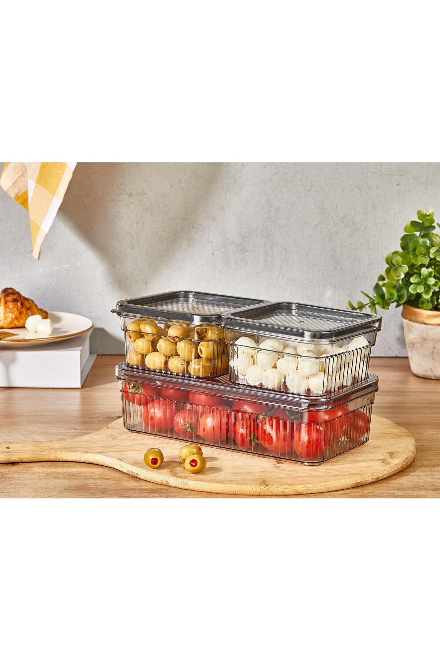 • Çeşitli Kapasiteler: Set, 1 adet 1,80 litrelik ve 2 adet 0,85 litrelik saklama kabı içerir.