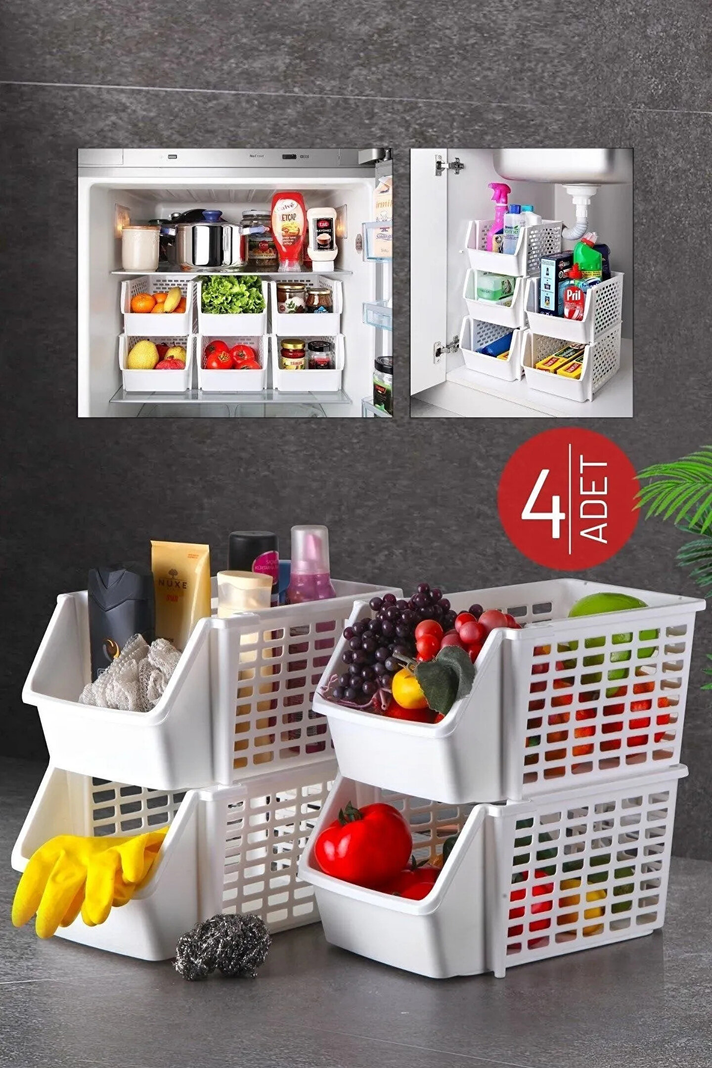 Ürünümüz yüksek performanslı sert plastikten üretilmiştir. ; Ebat: Yükseklik:15Cm Uzunluk:28Cm Genişlik:21Cm ; Kanserojen madde içermez. ; Banyo, Mutfak, Evye Altı, Dolap içi ve Buzdolabı içi çok amaçlı düzenleyici ; Mutfakta sebze ve meyve düzenlemek için idealdir. ; Mutfak, Banyo, Çocuk Odası, Ofis ve İşyerlerinde çok amaçlı kullanılabilir. ; Banyonuzda deterjan, ve diğer malzemelerinizi düzenler. ; Özellikle Lavabo altı ürünlerini düzene koymada yardımcı olur. ; Üst üste geçirip katlı olarak kullanabilirsiniz. ; Dayanıklı ve kolay kullanımlıdır. ; 4 Adet olarak gönderilmektedir. ;