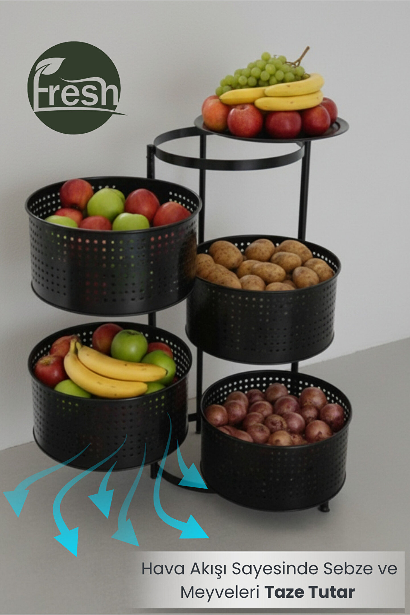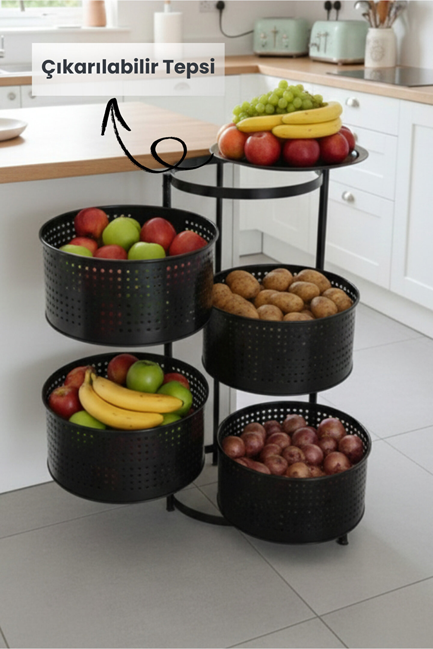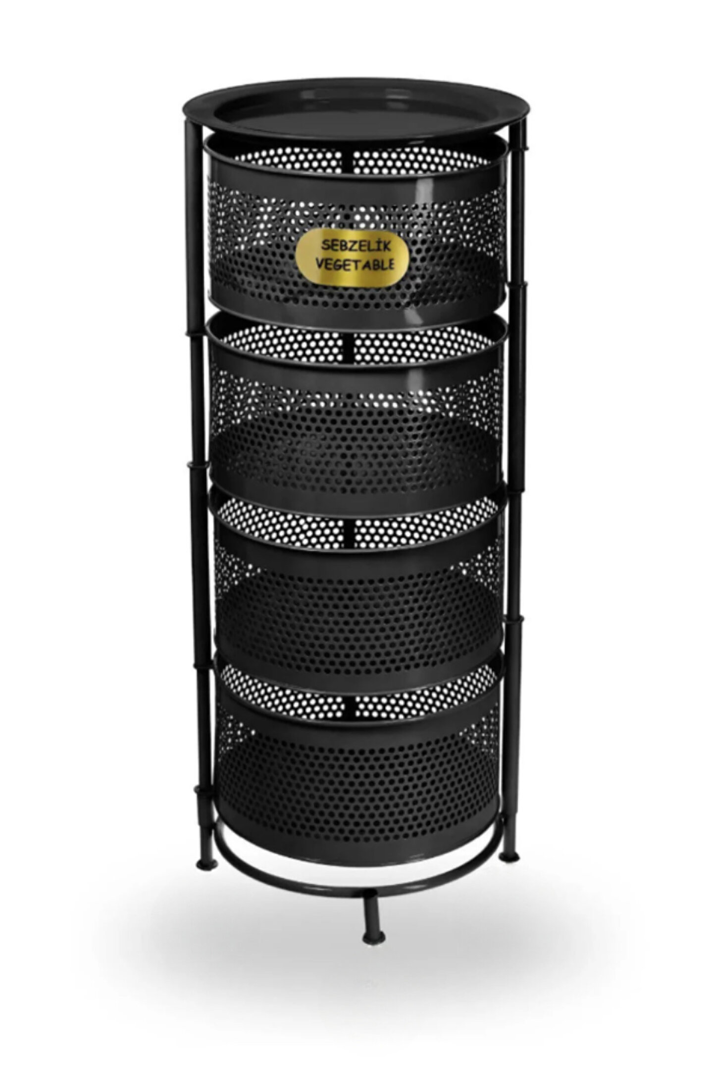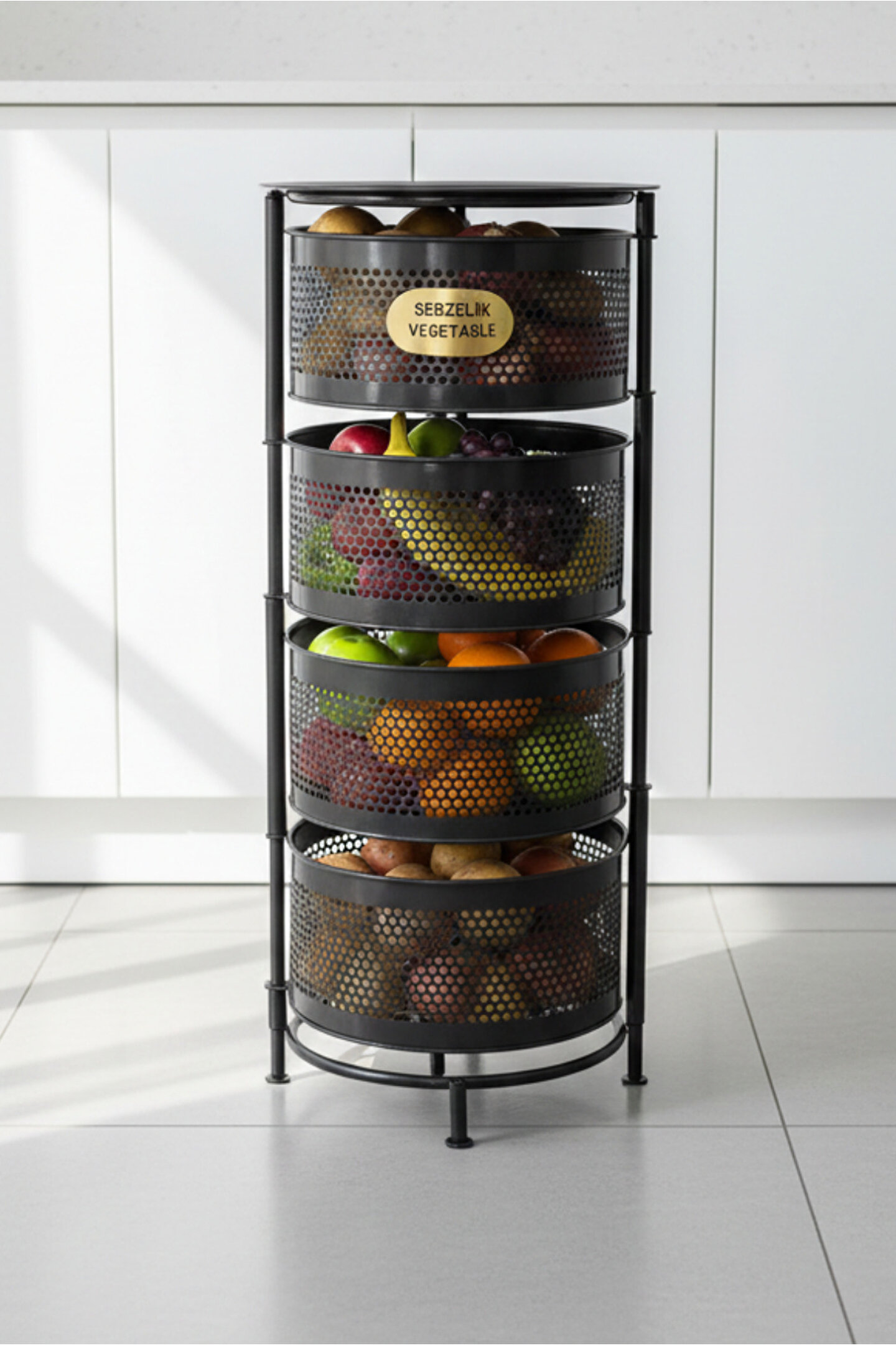 Orvila 4 Katlı Tepsili Kule Sebzelik Açılır Metal Patates Soğan Meyvelik Sepetli Rafı Siyah