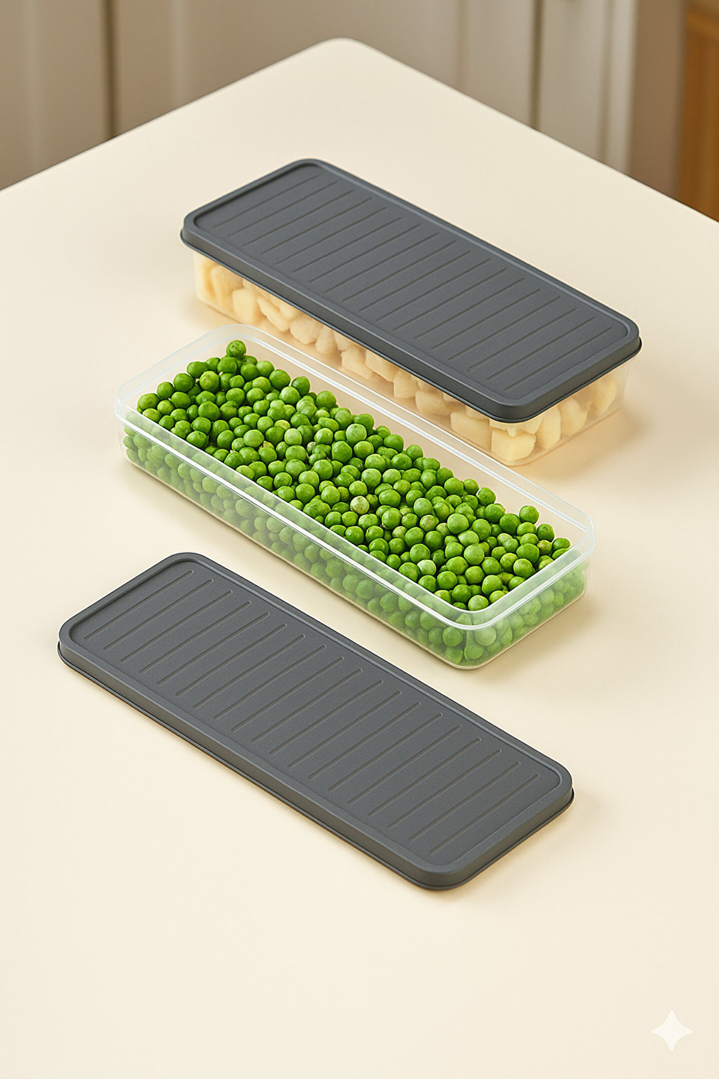 Şeffaf Gıda Saklama ve Buzdolabı Düzenleme Kutusu – 4’lü Set; Buzdolabı düzenini korumanıza ve gıdalarınızı uzun süre taze tutmanıza yardımcı olur; Şeffaf gövdesi sayesinde içindekileri kolayca görebilir, aradığınız ürünü zahmetsizce bulabilirsiniz; Hava geçirmez kapak yapısı, meyve, sebze, kahvaltılık ve yemek artıkları gibi gıdaların tazeliğini korur; İstiflenebilir tasarımı sayesinde buzdolabında maksimum alan tasarrufu sağlar; Dayanıklı, BPA içermeyen, sağlığa zararsız plastikten üretilmiştir; Kolay temizlenebilir yapısı ile hem elde hem de bulaşık makinesinde yıkanabilir; Sebze, meyve, kahvaltılık, sos, çerez veya yemek saklama amacıyla çok yönlü kullanım sunar; Modern gri kapak detayıyla mutfak estetiğine uyum sağlar; Ev, ofis, piknik veya kamp kullanımı için idealdir; Dondurucuya ve buzdolabına uygundur; Pratik, hijyenik ve düzenli bir saklama çözümü arayanlar için mükemmel bir seçenektir.; Ölçüsü 26,5x10,5 cm dir.;