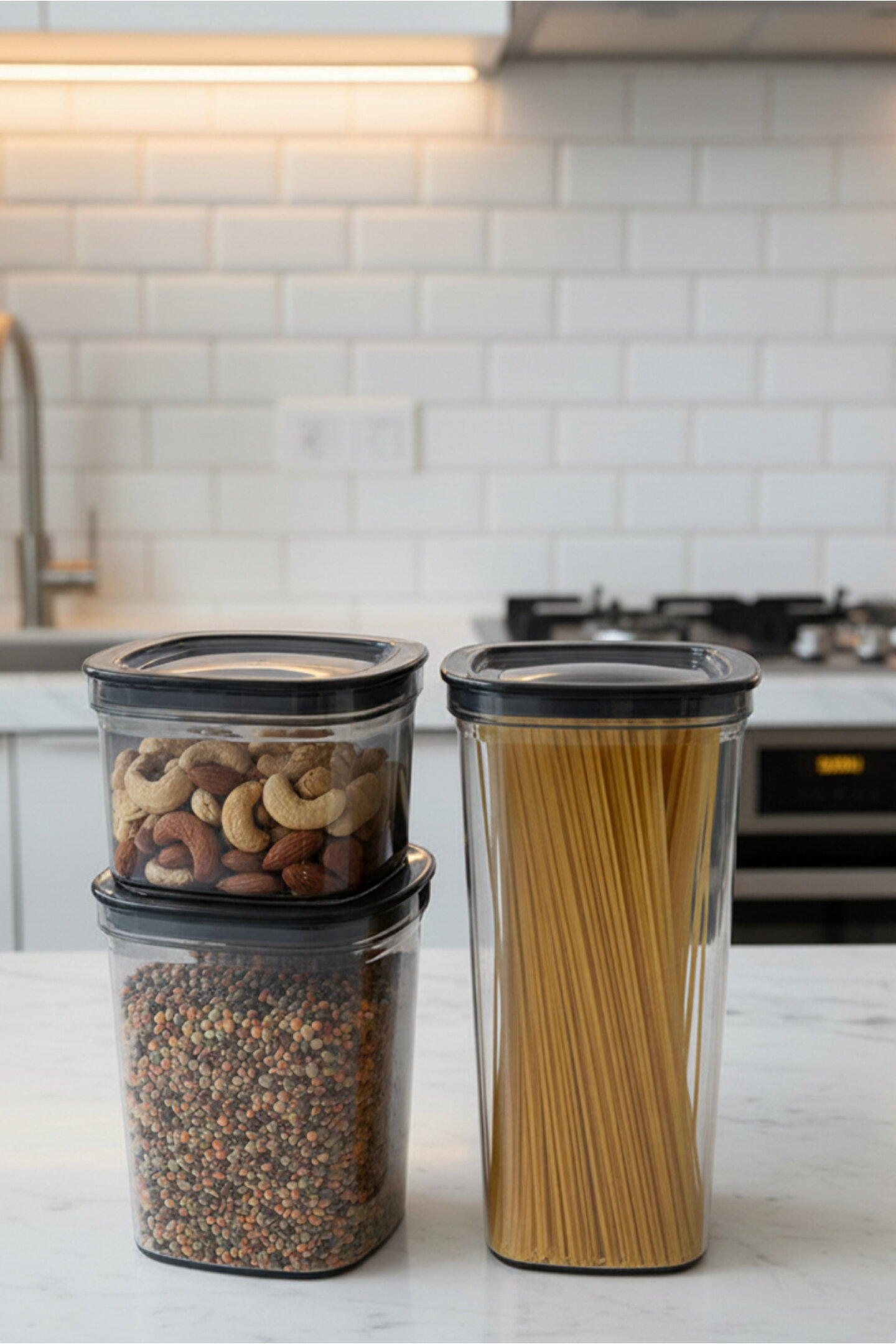 Saklama kapları; hava geçirmez ve sızdırmaz kapak sistemi sayesinde kuruyemiş, bakliyat, kahvaltılık ve atıştırmalıkları uzun süre taze tutar; hijyenik cam yüzeyi sayesinde gıdalarla tamamen güvenli temas sağlar ve koku yapmaz; modern kare-oval formuyla mutfak tezgâhında şık bir görüntü oluşturur; düzenli depolama için dar alanlara dahi rahatlıkla sığan ergonomik tasarıma sahiptir; saydam cam gövde içindeki ürünleri kolayca görmenizi sağlayarak kullanım kolaylığı sunar; kapak kısmı sağlam oturan özel contalı yapısı ile nemi engeller ve ürünlerin raf ömrünü uzatır; ceviz, fındık, badem, kaju, makarna, bakliyat, kahve çekirdeği, kuru meyve ve granola gibi tüm kuru gıdaların saklanmasına uygundur; ofis, mutfak, kiler ve restoranlarda düzen sağlamak için ideal depolama çözümüdür; ısıya, çizilmeye ve darbelere karşı dayanıklı cam yüzeyi uzun ömürlü kullanım sunar; minimal ve modern tasarımı ile her mutfak dekorasyonuna uyum sağlar; tezgâh üstü kullanımda estetik bir görünüm oluştururken dolap içlerinde de maksimum düzen sağlar; günlük kullanım için pratik ve kolay temizlenebilir yapısı ile kullanıcı dostudur; sağlıklı yaşamı destekleyen cam malzemesi plastik kokusu olmadan doğal saklama imkânı sunar; evinizde hem estetik hem fonksiyonel bir düzen yaratmak isteyenler için ideal bir seçimdir.; Ölçüsü 15,5x11,5 cm dir Elde yıkayınız bulaşık makinasına uygun değildir.; 1,4 L