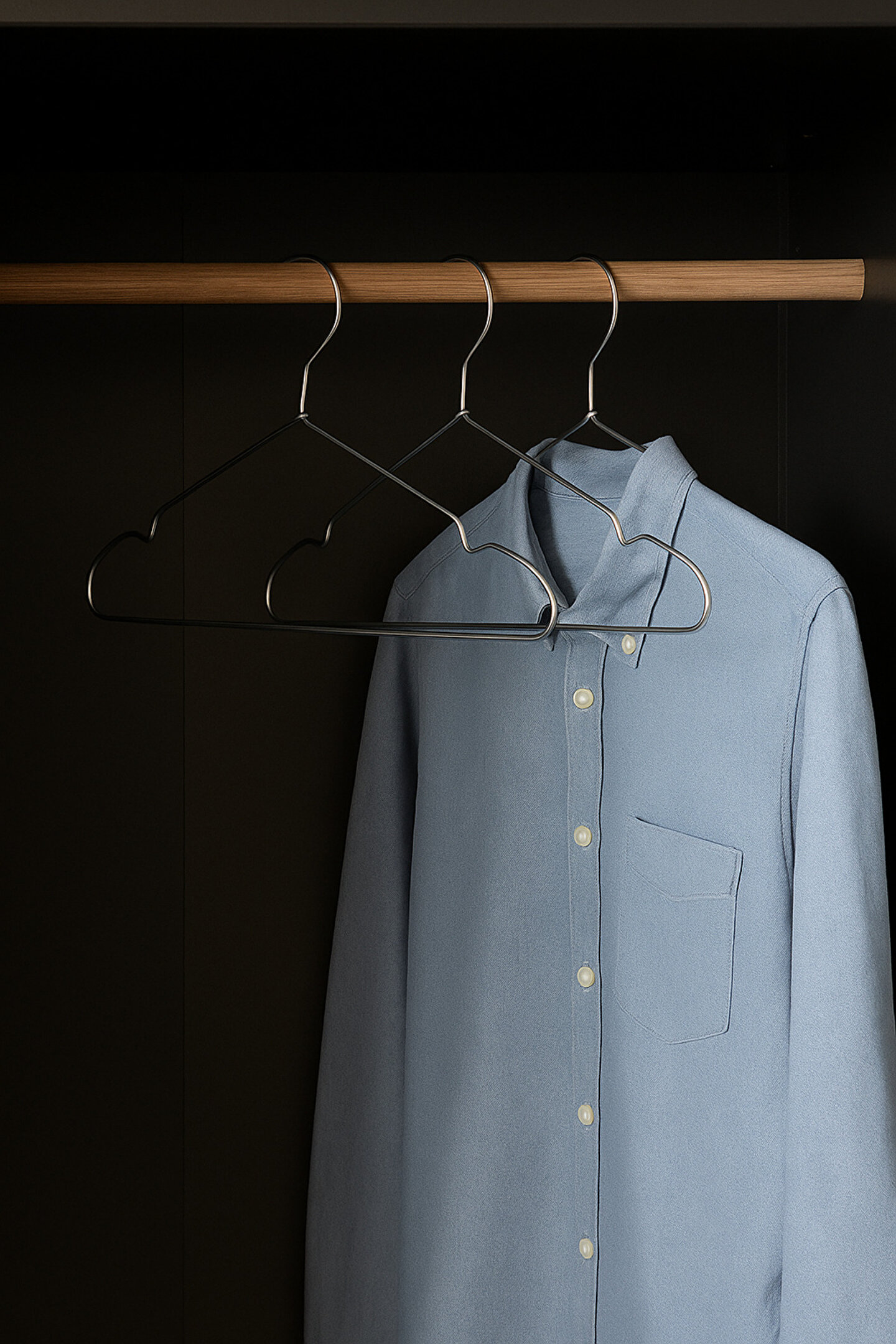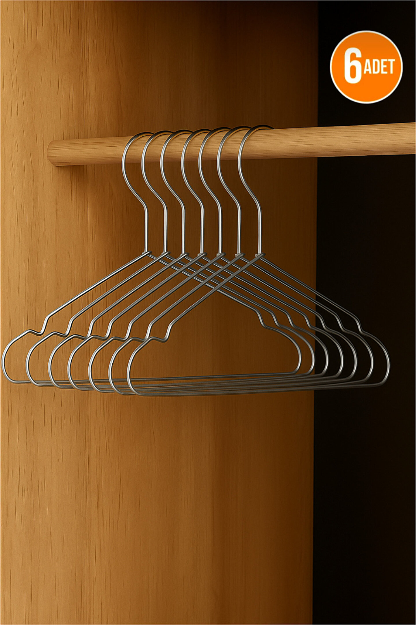 Dayanıklı ve paslanmaz metalden üretilen 6'lı gümüş renkli metal giysi askısı; dolap düzenini sağlamak ve yer tasarrufu yapmak için mükemmel bir tercihtir. ; 41 cm genişliğiyle gömlek, ceket, elbise ve pantolon gibi farklı kıyafet türleri için idealdir. ; ince ve sağlam tasarımı sayesinde dolap içinde maksimum alan sağlar. ; kaymaz formu giysilerin düzgün durmasını destekler. ; şık gümüş rengiyle modern dekorlara uyum sağlayan bu metal elbise askısı, uzun ömürlü, hafif ve kullanışlı yapısıyla her gardırop için vazgeçilmez bir düzenleyicidir. ;