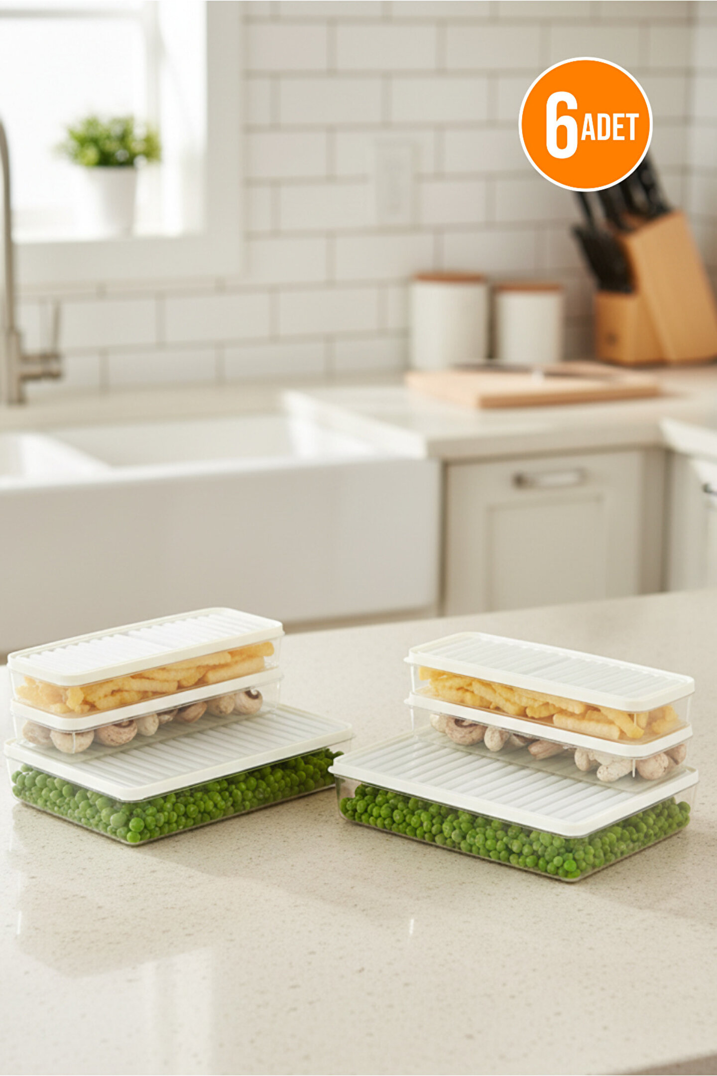 Orvila 6lı Set Saklama Kabı Buzdolabı Dondurucu Difrize Uygun Düzenleyici Set 2x2400 ml 4x1200 ml