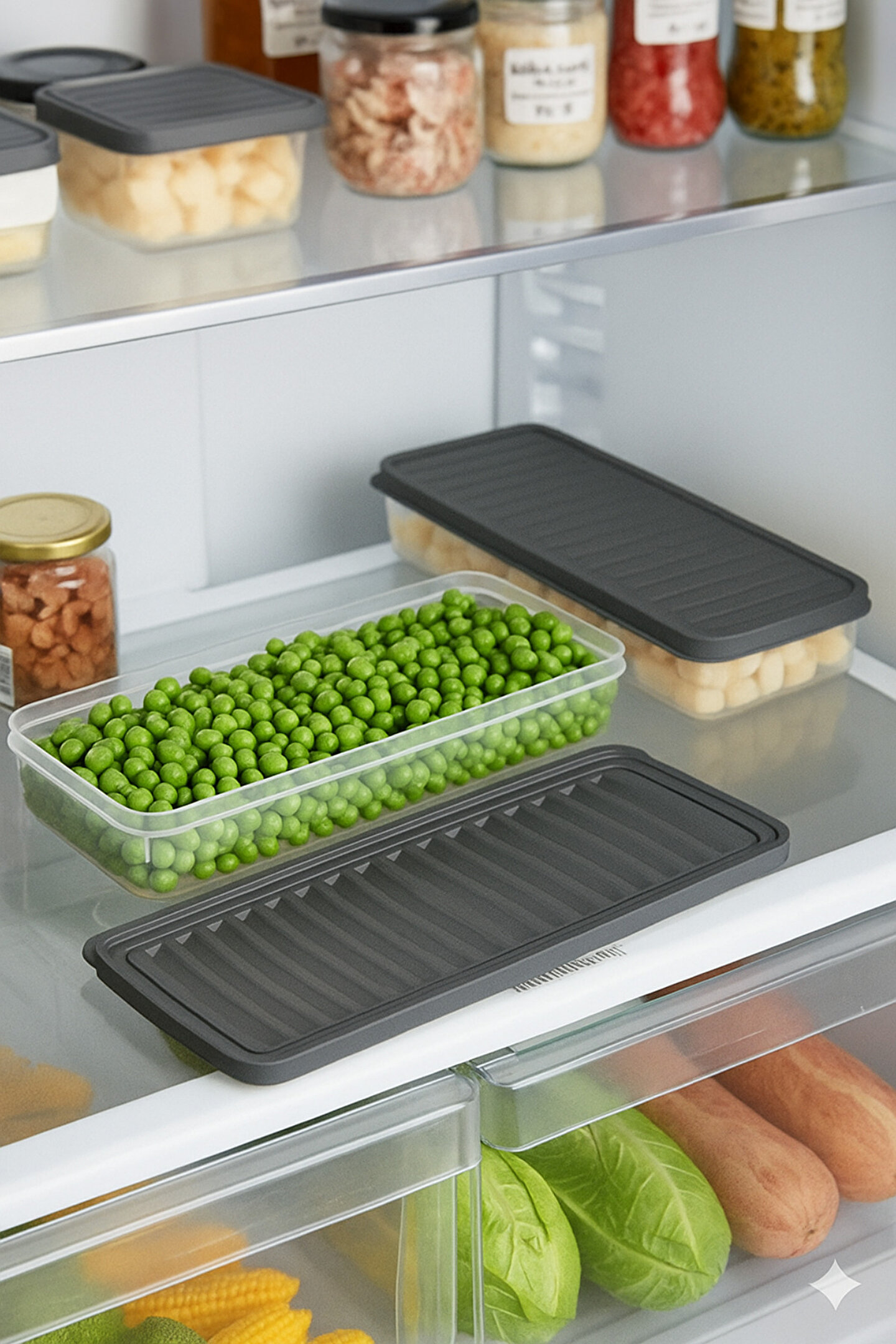 Şeffaf Gıda Saklama ve Buzdolabı Düzenleme Kutusu – 4’lü Set; Buzdolabı düzenini korumanıza ve gıdalarınızı uzun süre taze tutmanıza yardımcı olur; Şeffaf gövdesi sayesinde içindekileri kolayca görebilir, aradığınız ürünü zahmetsizce bulabilirsiniz; Hava geçirmez kapak yapısı, meyve, sebze, kahvaltılık ve yemek artıkları gibi gıdaların tazeliğini korur; İstiflenebilir tasarımı sayesinde buzdolabında maksimum alan tasarrufu sağlar; Dayanıklı, BPA içermeyen, sağlığa zararsız plastikten üretilmiştir; Kolay temizlenebilir yapısı ile hem elde hem de bulaşık makinesinde yıkanabilir; Sebze, meyve, kahvaltılık, sos, çerez veya yemek saklama amacıyla çok yönlü kullanım sunar; Modern gri kapak detayıyla mutfak estetiğine uyum sağlar; Ev, ofis, piknik veya kamp kullanımı için idealdir; Dondurucuya ve buzdolabına uygundur; Pratik, hijyenik ve düzenli bir saklama çözümü arayanlar için mükemmel bir seçenektir.; Ölçüsü 27,5x22 cm dir ve 26,5x10,5 cm dir.;