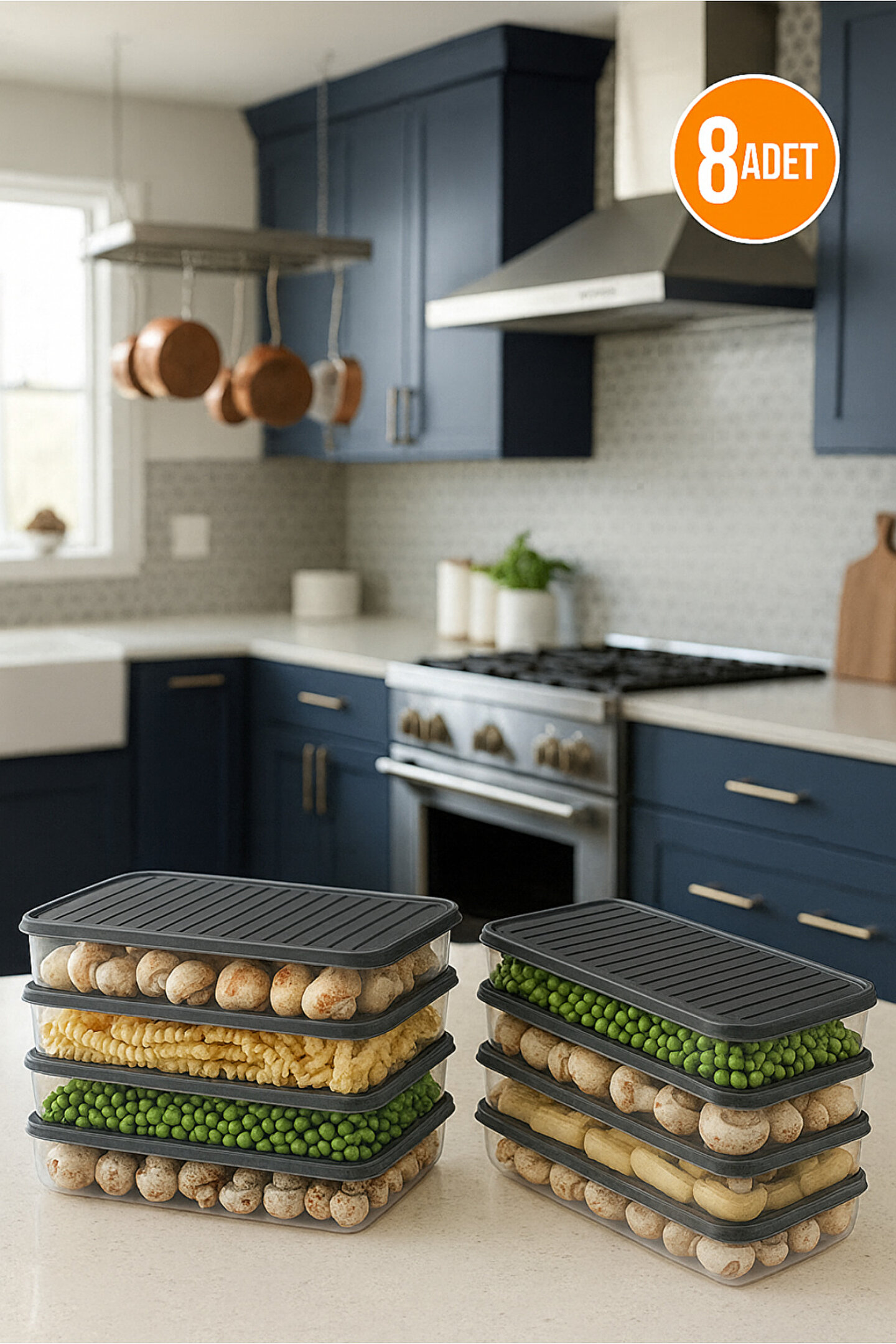 Şeffaf Gıda Saklama ve Buzdolabı Düzenleme Kutusu – 4’lü Set; Buzdolabı düzenini korumanıza ve gıdalarınızı uzun süre taze tutmanıza yardımcı olur; Şeffaf gövdesi sayesinde içindekileri kolayca görebilir, aradığınız ürünü zahmetsizce bulabilirsiniz; Hava geçirmez kapak yapısı, meyve, sebze, kahvaltılık ve yemek artıkları gibi gıdaların tazeliğini korur; İstiflenebilir tasarımı sayesinde buzdolabında maksimum alan tasarrufu sağlar; Dayanıklı, BPA içermeyen, sağlığa zararsız plastikten üretilmiştir; Kolay temizlenebilir yapısı ile hem elde hem de bulaşık makinesinde yıkanabilir; Sebze, meyve, kahvaltılık, sos, çerez veya yemek saklama amacıyla çok yönlü kullanım sunar; Modern gri kapak detayıyla mutfak estetiğine uyum sağlar; Ev, ofis, piknik veya kamp kullanımı için idealdir; Dondurucuya ve buzdolabına uygundur; Pratik, hijyenik ve düzenli bir saklama çözümü arayanlar için mükemmel bir seçenektir.; Ölçüsü büyük kutu 27,5x22 cm küçük kutu 26,5x10,5 cm dir.;