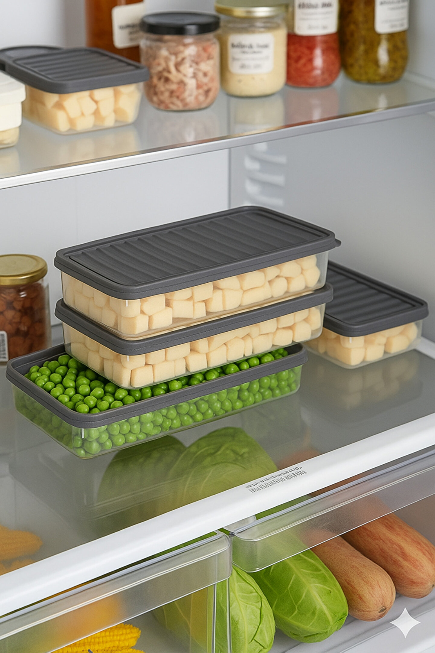 Şeffaf Gıda Saklama ve Buzdolabı Düzenleme Kutusu – 4’lü Set; Buzdolabı düzenini korumanıza ve gıdalarınızı uzun süre taze tutmanıza yardımcı olur; Şeffaf gövdesi sayesinde içindekileri kolayca görebilir, aradığınız ürünü zahmetsizce bulabilirsiniz; Hava geçirmez kapak yapısı, meyve, sebze, kahvaltılık ve yemek artıkları gibi gıdaların tazeliğini korur; İstiflenebilir tasarımı sayesinde buzdolabında maksimum alan tasarrufu sağlar; Dayanıklı, BPA içermeyen, sağlığa zararsız plastikten üretilmiştir; Kolay temizlenebilir yapısı ile hem elde hem de bulaşık makinesinde yıkanabilir; Sebze, meyve, kahvaltılık, sos, çerez veya yemek saklama amacıyla çok yönlü kullanım sunar; Modern gri kapak detayıyla mutfak estetiğine uyum sağlar; Ev, ofis, piknik veya kamp kullanımı için idealdir; Dondurucuya ve buzdolabına uygundur; Pratik, hijyenik ve düzenli bir saklama çözümü arayanlar için mükemmel bir seçenektir.; Ölçücü 26,5x10,5 cm dir.;