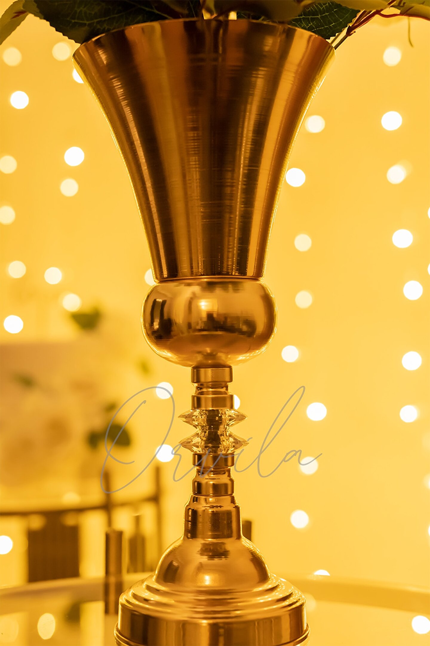 Orvila Dekoratif Gold Renk Taşlı Kupa Vazo Söz Nişan Düğün Konsept