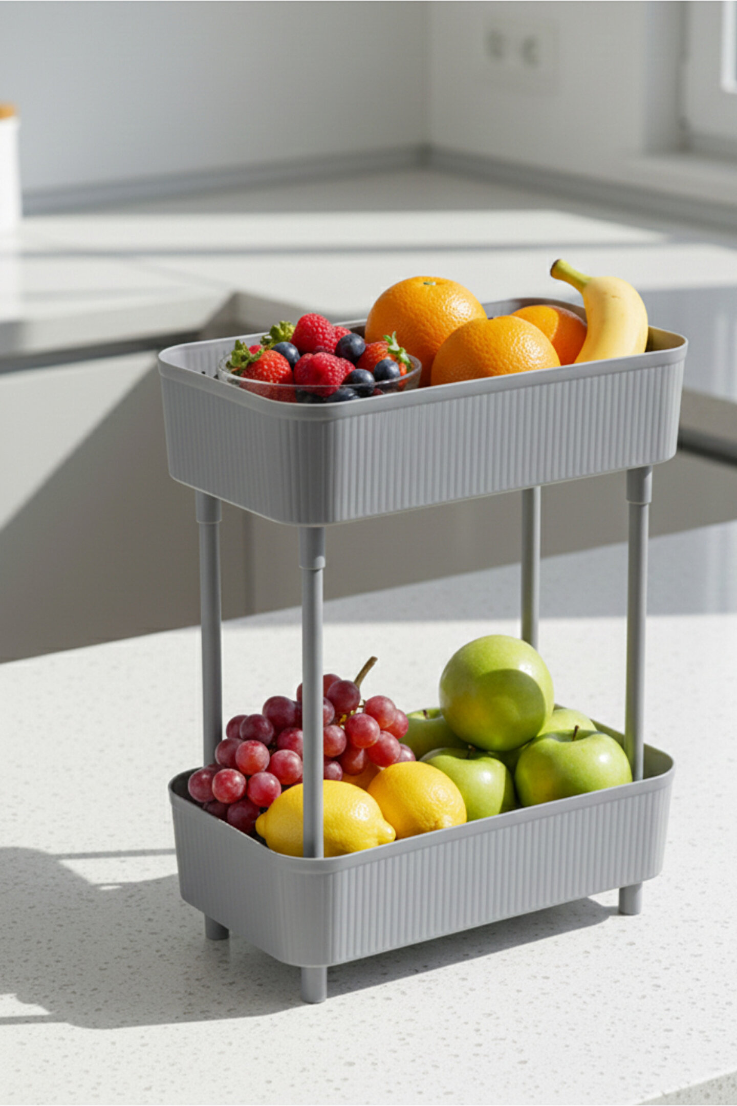 Orvila Düzenleyici 2 Katlı Gri Raf -Dolap İçi & Tezgah Üstü Banyo Deterjanlık Mutfak Evye Altı Organizer