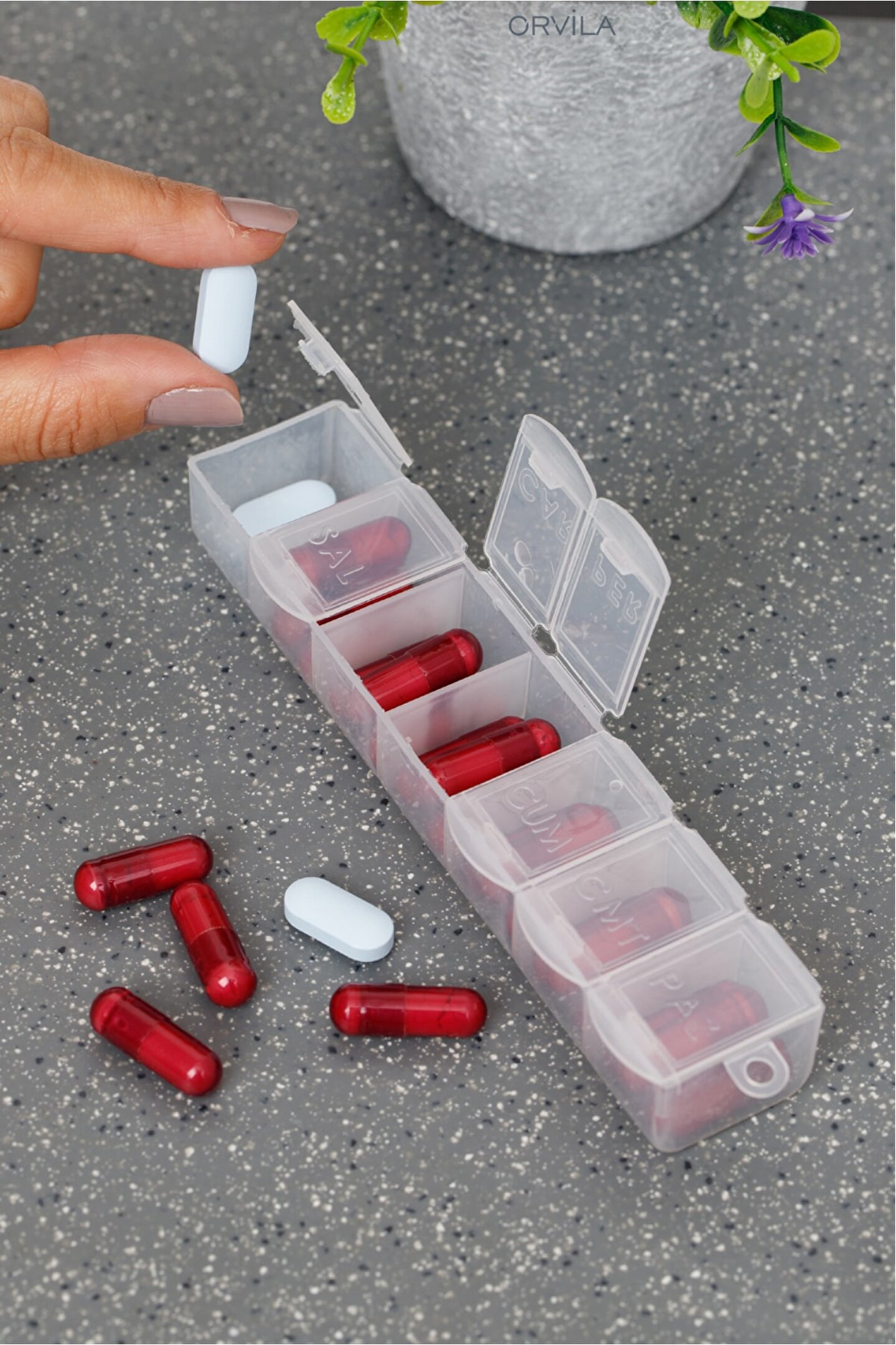Kapaklı Haftalık İlaç Kutusu; Ürün üzerinde haftanın isimleri şeffaf yazı ile yazmaktadır. Daha çok belirginleştirmek için üstünden istediğiniz renk keçeli kalem ile geçerek isimleri belirginleştirebilirsiniz.; Ürün Ölçüleri: 15x3 cm; Düzenli Olarak Kullanmak Zorunda Olduğunuz İlaçlarınızı Yanınızda Kolayca Ve Gün Gün Ayırarak Taşıyabileceğiniz Harika Bir Ürün Sizleri Bekliyor Haftalık İlaç Kutusu .; 7 Farklı Bölmeden Oluşan Haftalık İlaç Kutusu, Kapaklı Mekanizmaya Sahiptir; Günlere Ayrılmış Bölmeler Sayesinde, İlacınızın Gününü Aksatmadan Rahatlıkla Sağlığınızı Kontrol Altına Alabilirsiniz; Kolayca Doldurabilir Ve İçinden Kolayca İlaç Alınabilir; Şeffaf Kapaklı Tasarımı İle İçindeki Görebilir Ve Varsa Kir Ve Lekeyi Fark edebilirsiniz; Kompakt Boyutu İle Çantanıza ya da Cebinize Sığacak; Sağlığa Zararlı Olmayan Plastik Malzemeden Üretilmiştir;