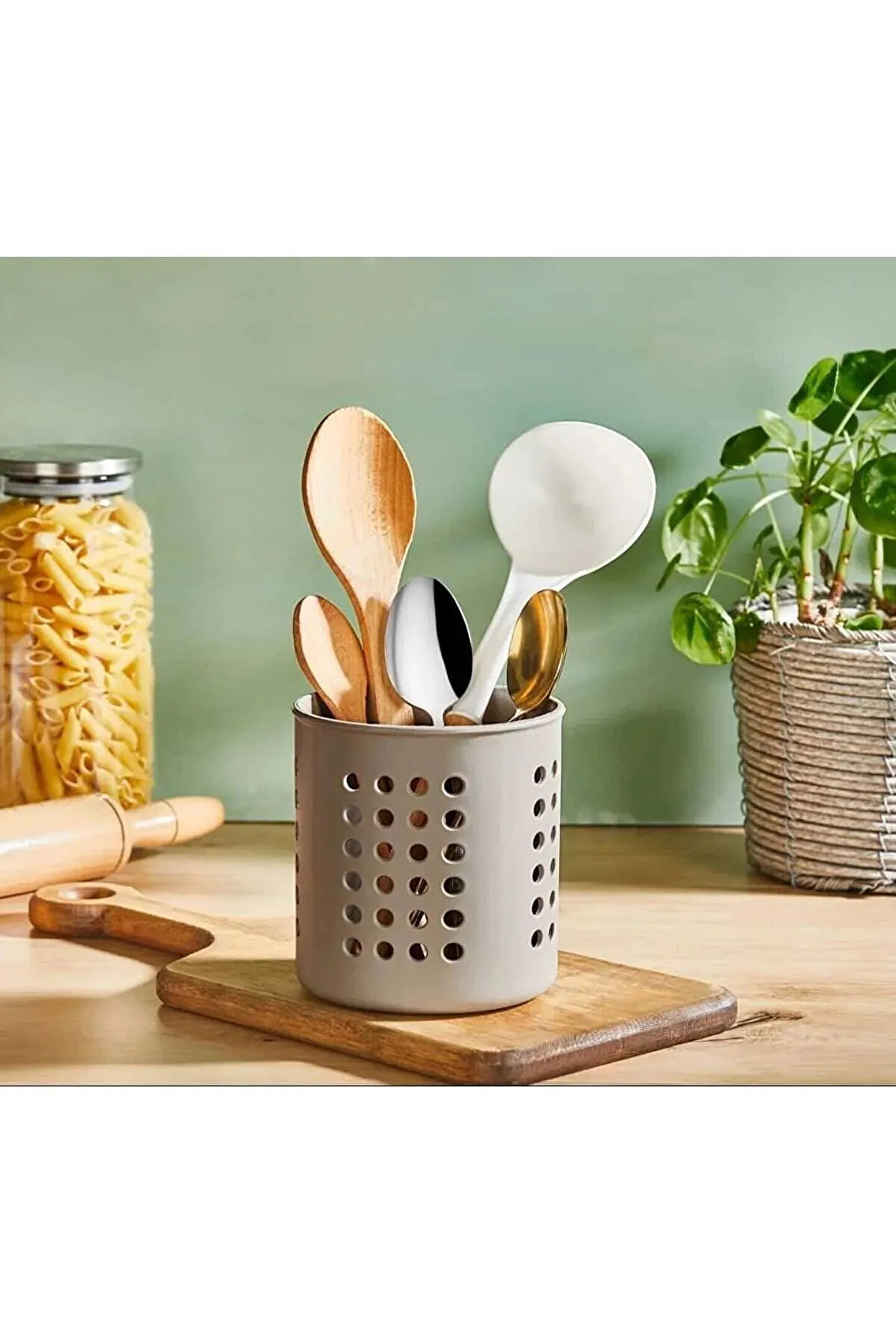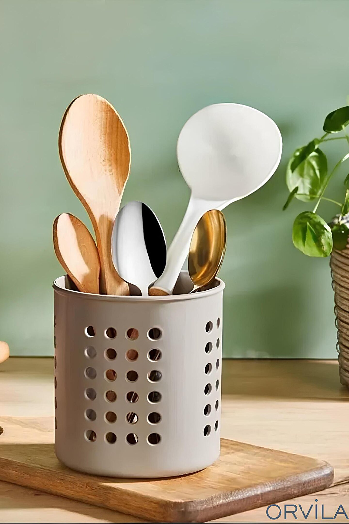 Kaşık, kepçe ve bıçaklarınızı düzenli bir şekilde kurutmak için mükemmel bir çözüm! Yüksekliği 13 cm ve çapı 12 cm olan bu ergonomik kaşıklık, hem evde hem ofiste hem de işyerlerinde kullanım için idealdir.; Kırılmaz plastik malzemesi sayesinde paslanmaz, uzun ömürlüdür ve dayanıklıdır.; Çeyiz setiniz için de harika bir seçenek olan bu kaşıklık, mutfak gereçlerinizi güvenle yerleştirebilmeniz için geniş bir alan sunar.; Temizliği son derece kolaydır, hijyenik kullanım sağlar.; Şık tasarımıyla mutfaklarınıza şıklık katar ve dağınıklığı ortadan kaldırır.;; ; Yükseklik: 13 cm;; ; Çap: 12 cm;; ; Malzeme: Kırılmaz plastik (Paslanmaz, uzun ömürlü).;; ; Kullanım Alanları: Mutfak, ofis, ev, işyeri.;; ; Ergonomik ve pratik tasarım.;; ; Kaşık, kepçe, bıçak gibi mutfak gereçlerini kolayca kurutun.;; ; Kolay temizlenebilir.;; ; Çeyizler için mükemmel seçenek.;; ;