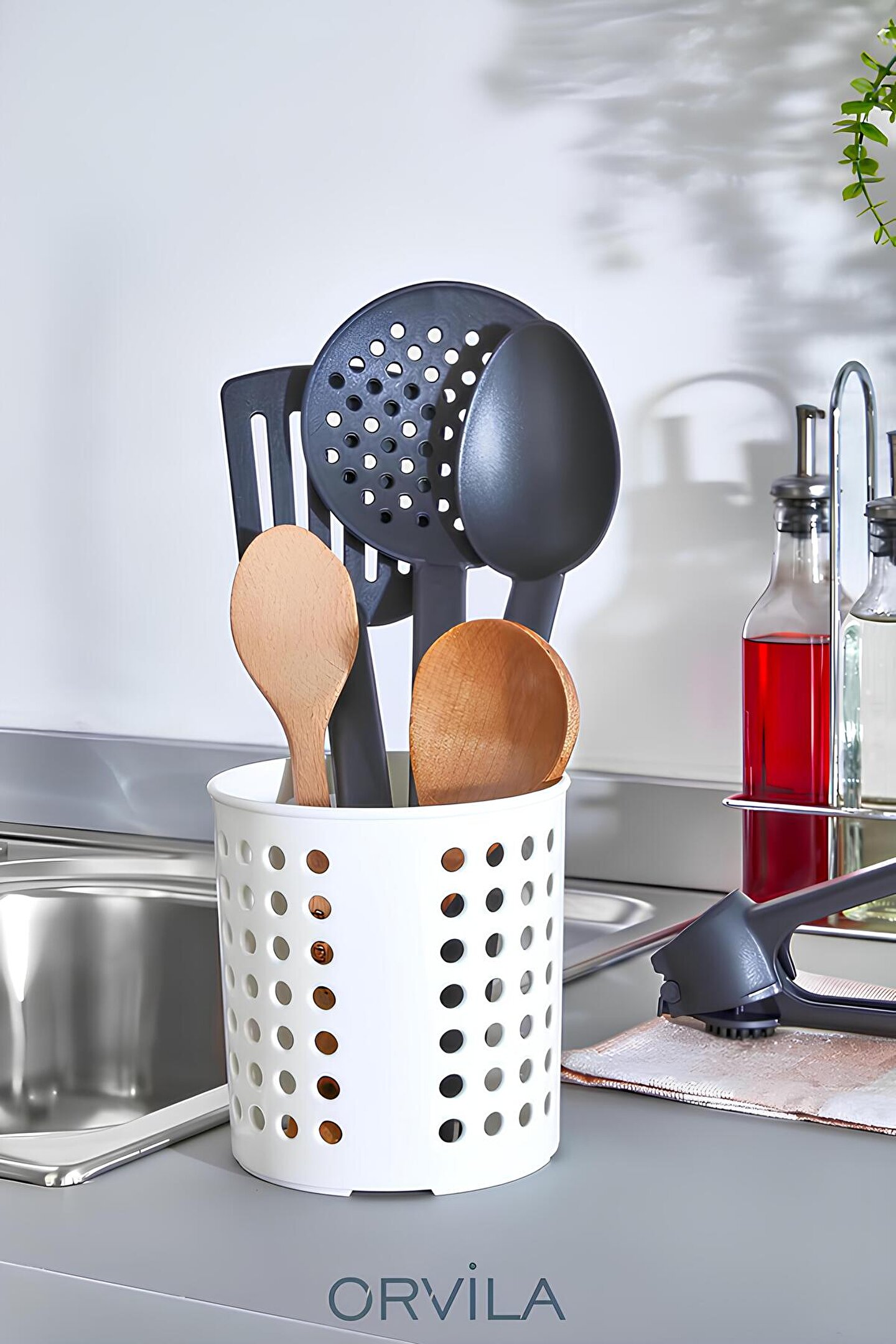 Orvila Kaşıklık - Tezgah Üstü Delikli Kaşıklık-Kepçe-Bıçak Kurutmalık Düzenleyici Organizer