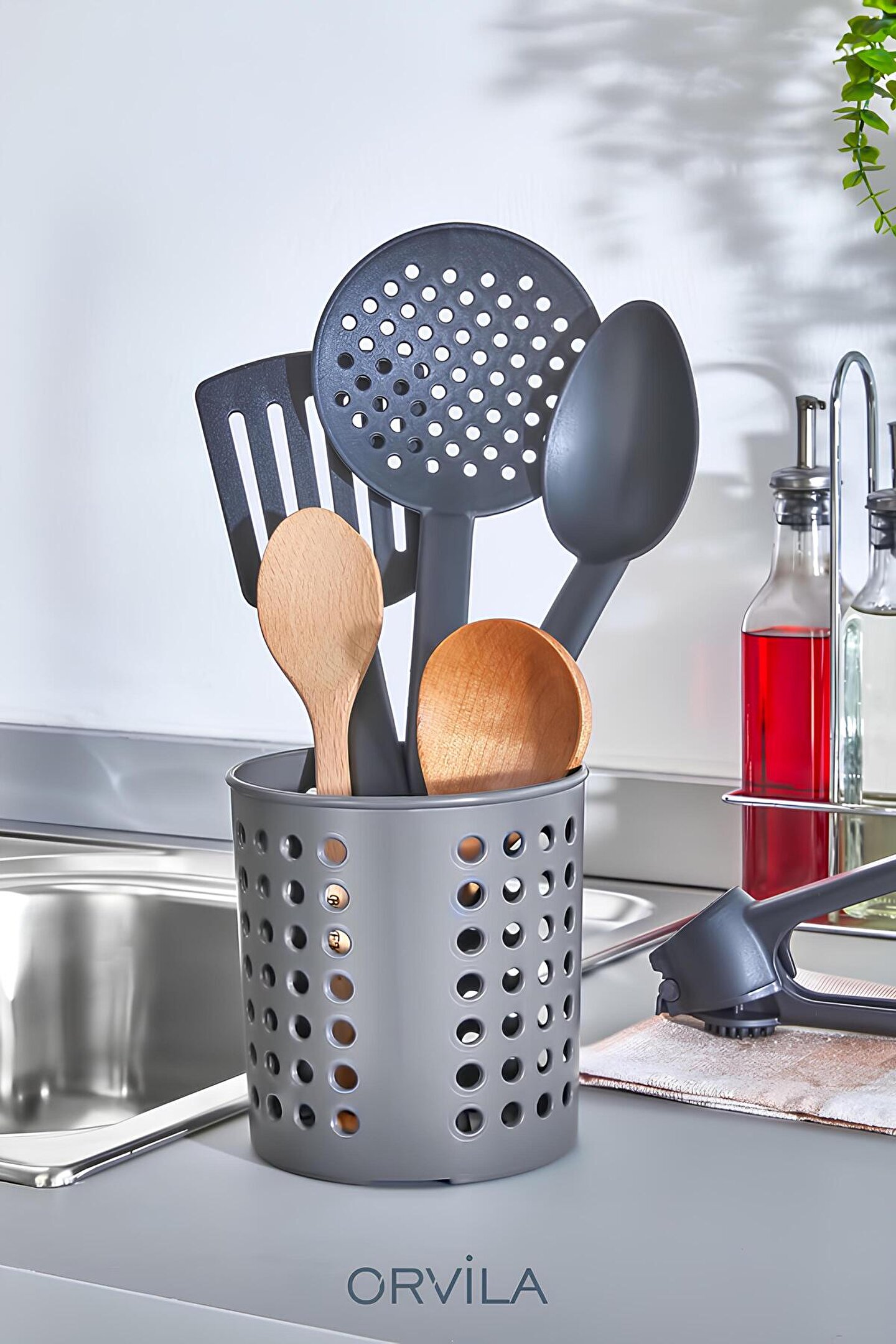 Kaşık, kepçe ve bıçaklarınızı düzenli bir şekilde kurutmak için mükemmel bir çözüm! Yüksekliği 13 cm ve çapı 12 cm olan bu ergonomik kaşıklık, hem evde hem ofiste hem de işyerlerinde kullanım için idealdir. Kırılmaz plastik malzemesi sayesinde paslanmaz, uzun ömürlüdür ve dayanıklıdır. Çeyiz setiniz için de harika bir seçenek olan bu kaşıklık, mutfak gereçlerinizi güvenle yerleştirebilmeniz için geniş bir alan sunar. Temizliği son derece kolaydır, hijyenik kullanım sağlar. Şık tasarımıyla mutfaklarınıza şıklık katar ve dağınıklığı ortadan kaldırır.;;