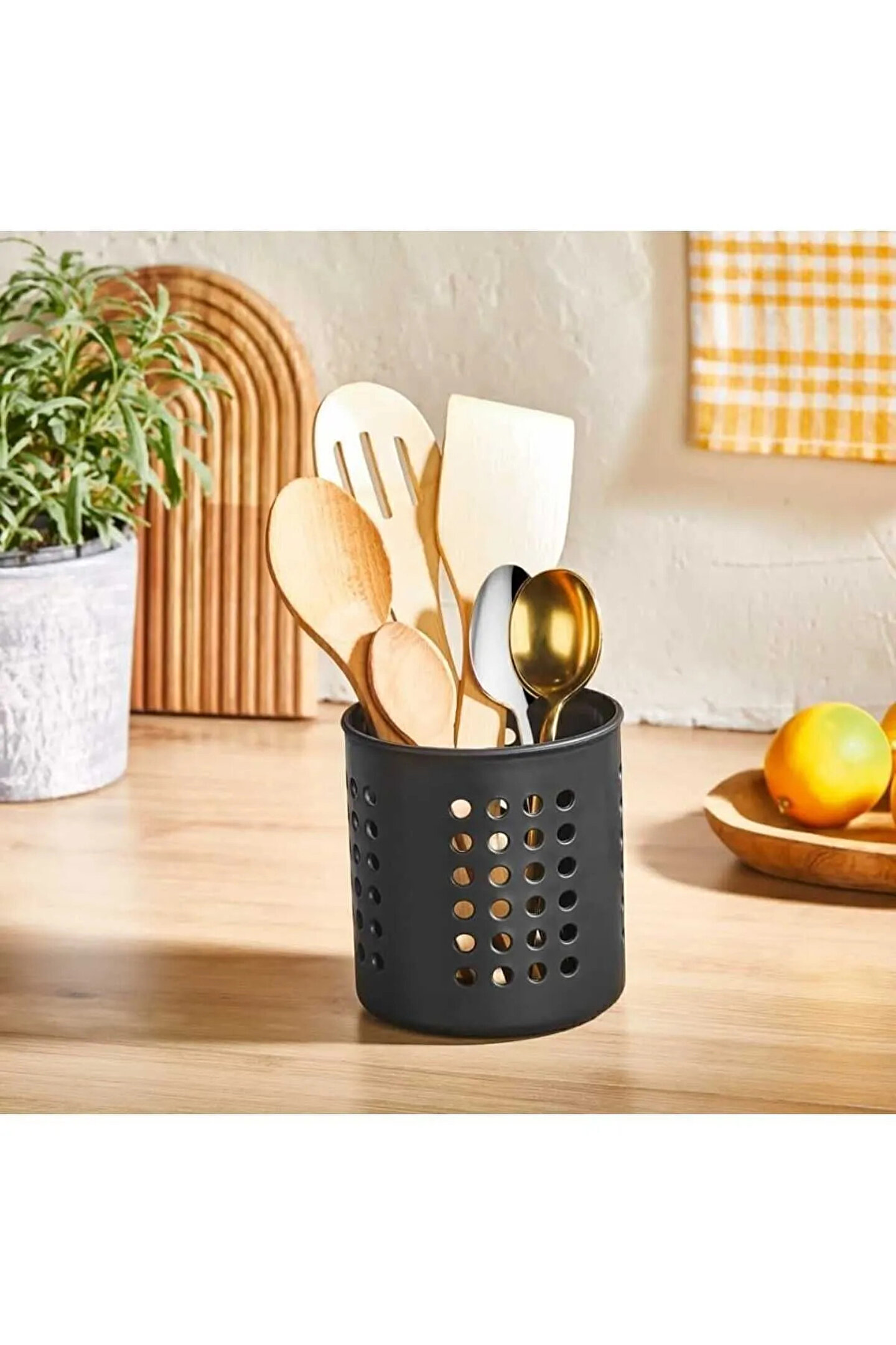 Kaşık, kepçe ve bıçaklarınızı düzenli bir şekilde kurutmak için mükemmel bir çözüm! Yüksekliği 13 cm ve çapı 12 cm olan bu ergonomik kaşıklık, hem evde hem ofiste hem de işyerlerinde kullanım için idealdir.; Kırılmaz plastik malzemesi sayesinde paslanmaz, uzun ömürlüdür ve dayanıklıdır.; Çeyiz setiniz için de harika bir seçenek olan bu kaşıklık, mutfak gereçlerinizi güvenle yerleştirebilmeniz için geniş bir alan sunar.; Temizliği son derece kolaydır, hijyenik kullanım sağlar.; Şık tasarımıyla mutfaklarınıza şıklık katar ve dağınıklığı ortadan kaldırır.;; ; Yükseklik: 13 cm;; ; Çap: 12 cm;; ; Malzeme: Kırılmaz plastik (Paslanmaz, uzun ömürlü).;; ; Kullanım Alanları: Mutfak, ofis, ev, işyeri.;; ; Ergonomik ve pratik tasarım.;; ; Kaşık, kepçe, bıçak gibi mutfak gereçlerini kolayca kurutun.;; ; Kolay temizlenebilir.;; ; Çeyizler için mükemmel seçenek.;; ;