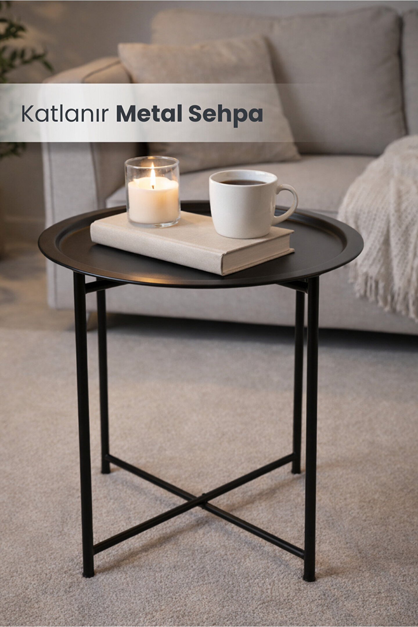 Katlanır Tepsili Metal Sehpa Çok Amaçlı Çıkarılabilir Tepsili Sehpa