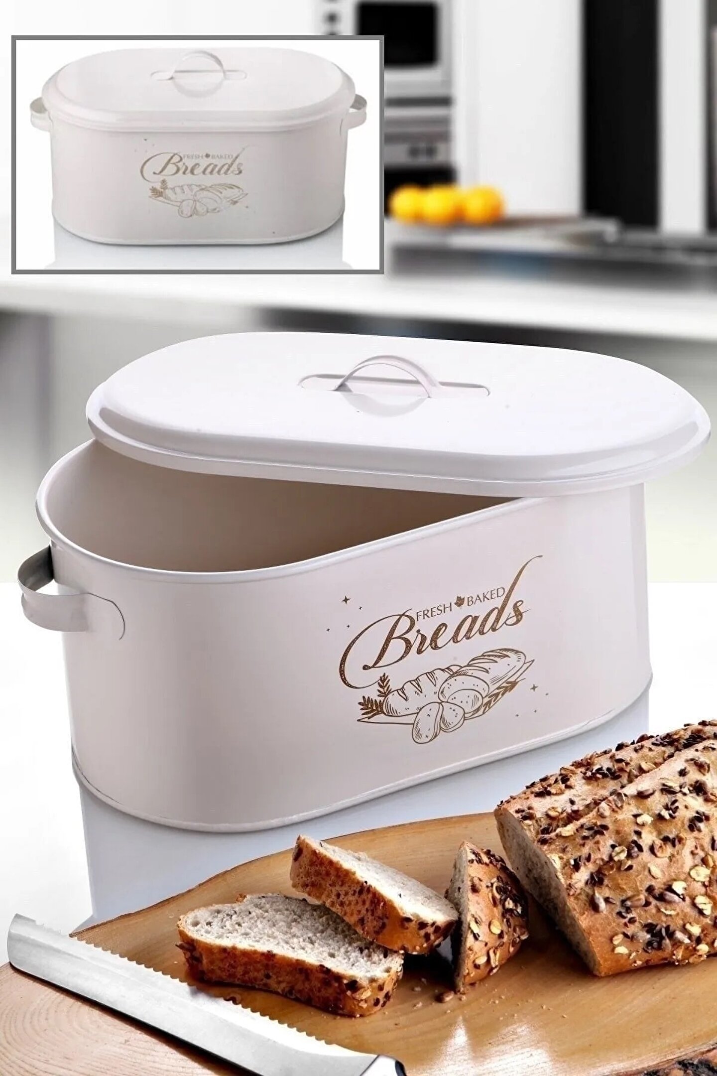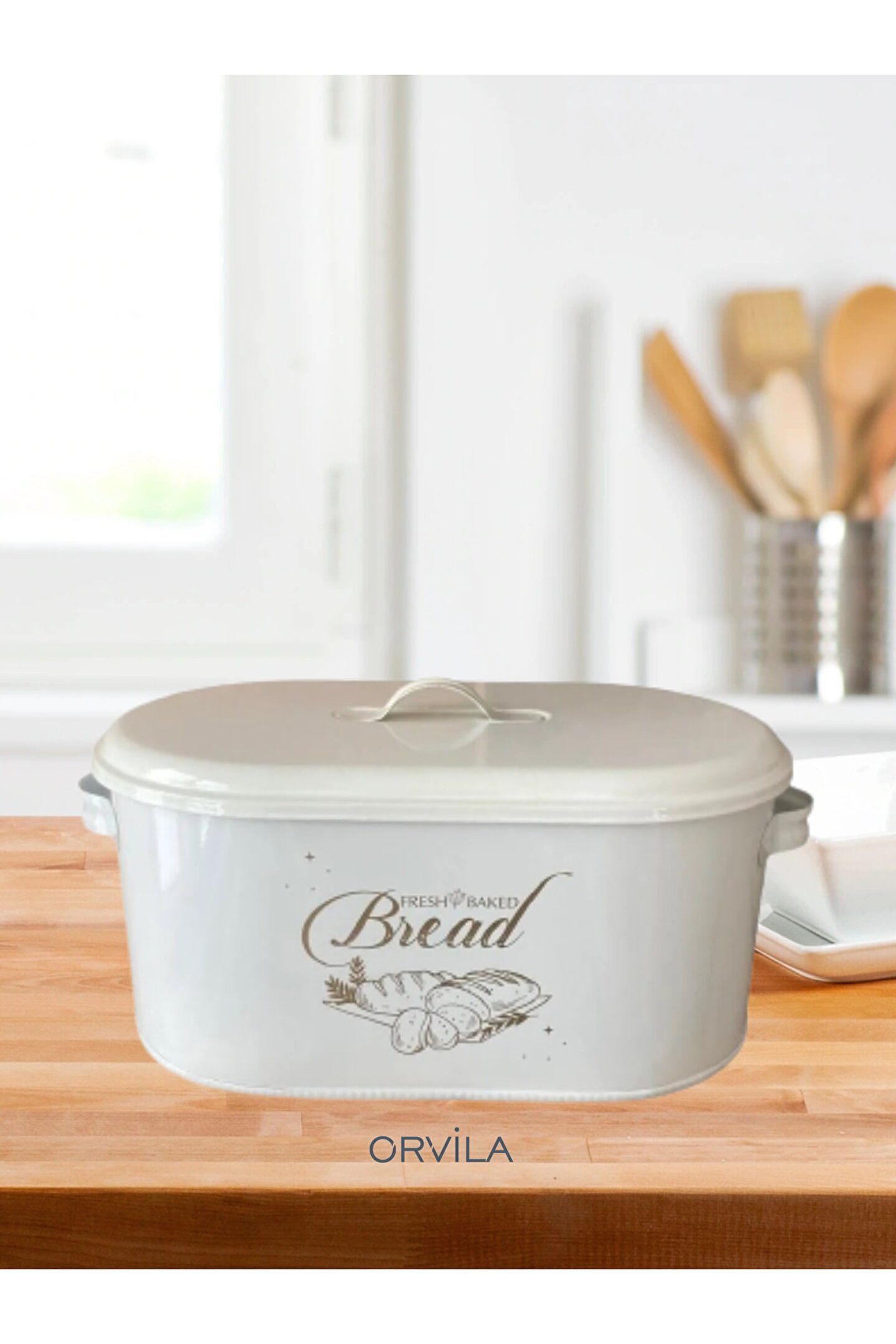 Orvila Lüx Metal Kapaklı Kulplu Beyaz Ekmeklik