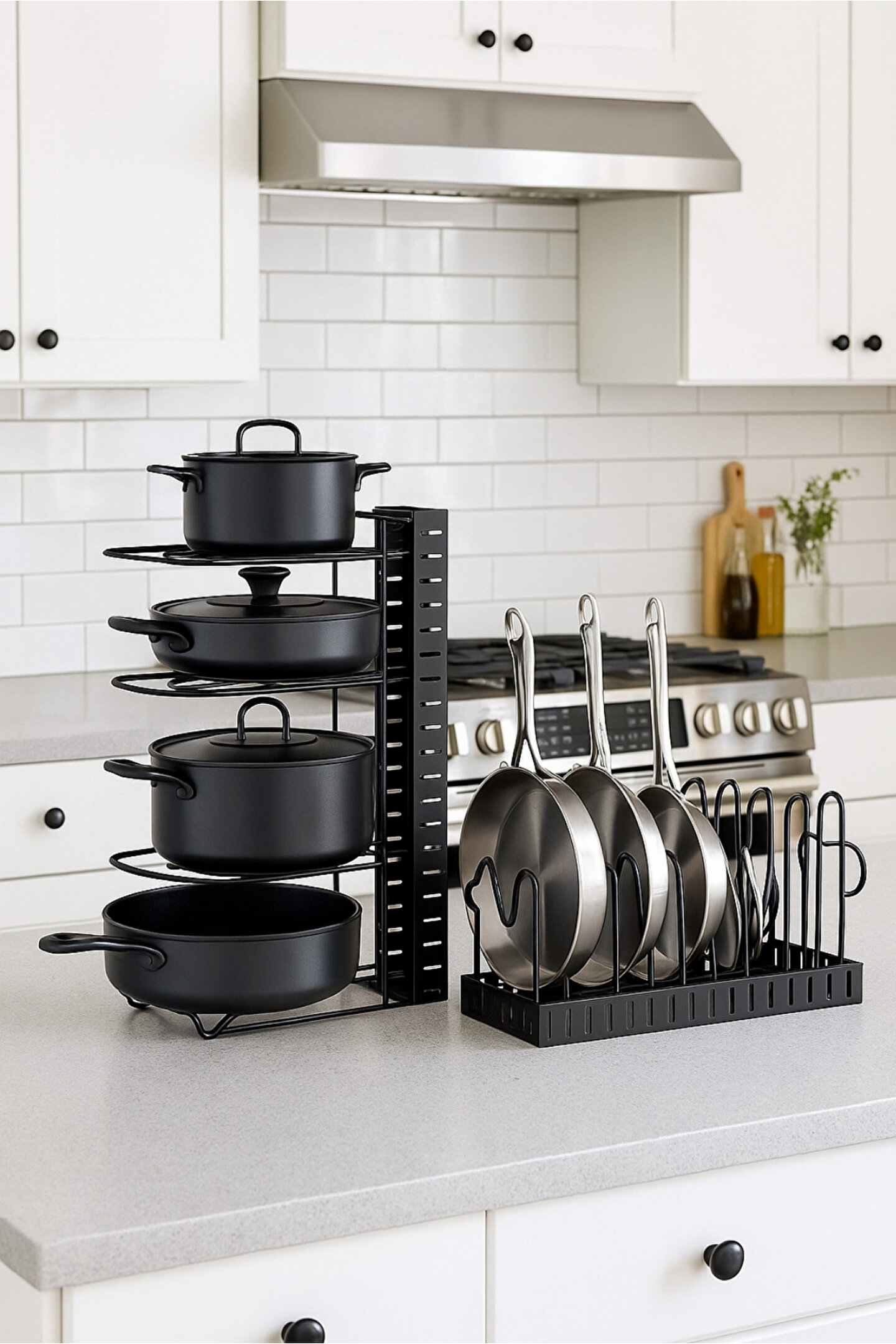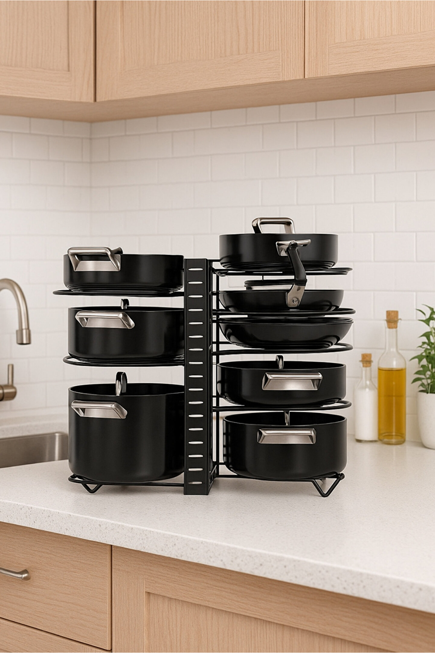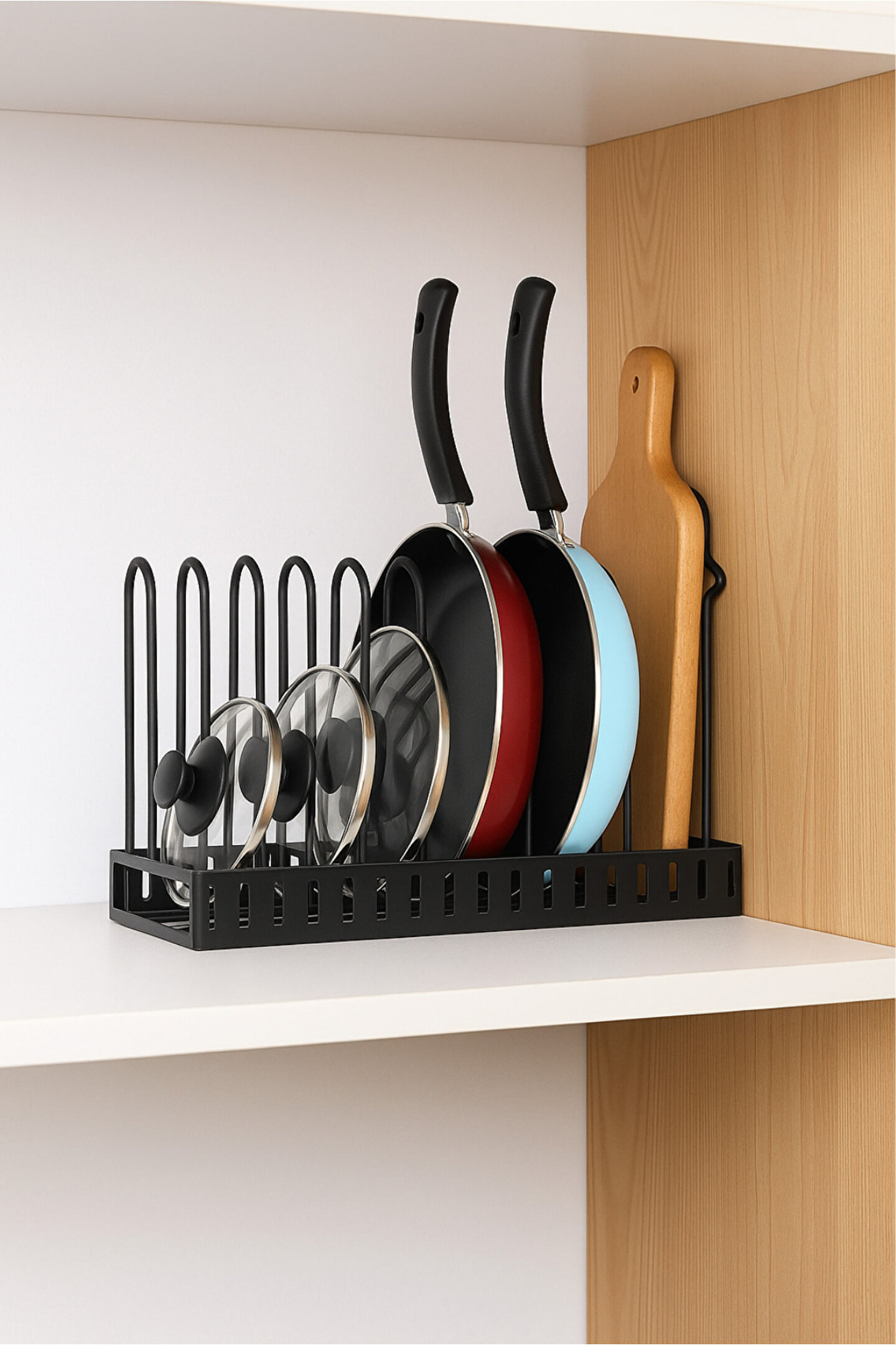 Dayanıklı metal gövdesiyle uzun ömürlü kullanım sunan bu tencere ve tava düzenleyici, mutfakta düzeni ve şıklığı bir araya getirir; hem tezgah üstünde hem dolap içinde kullanıma uygundur.; Kaymaz tabanı sayesinde sabit durur, paslanmaz yapısı ile güvenli ve hijyenik bir kullanım sağlar.; Ölçüsü 40x52 cm dir; Ayarlanarak kolay ve farklı kullanım sağlar.; Tava, tencere, kapak ve kesme tahtası gibi mutfak gereçlerini düzenli bir şekilde saklamanıza yardımcı olur; yer kazandırır ve dağınıklığı ortadan kaldırır.; Modern tasarımıyla mutfağınıza estetik bir görünüm katar, kolay kurulumu sayesinde pratik bir çözüm sunar.; Kullanım Alanları Mutfak dolabı içi düzenleme Tezgah üstü saklama alanı Restoran, kafe veya ev tipi mutfaklar için modern düzenleyici.