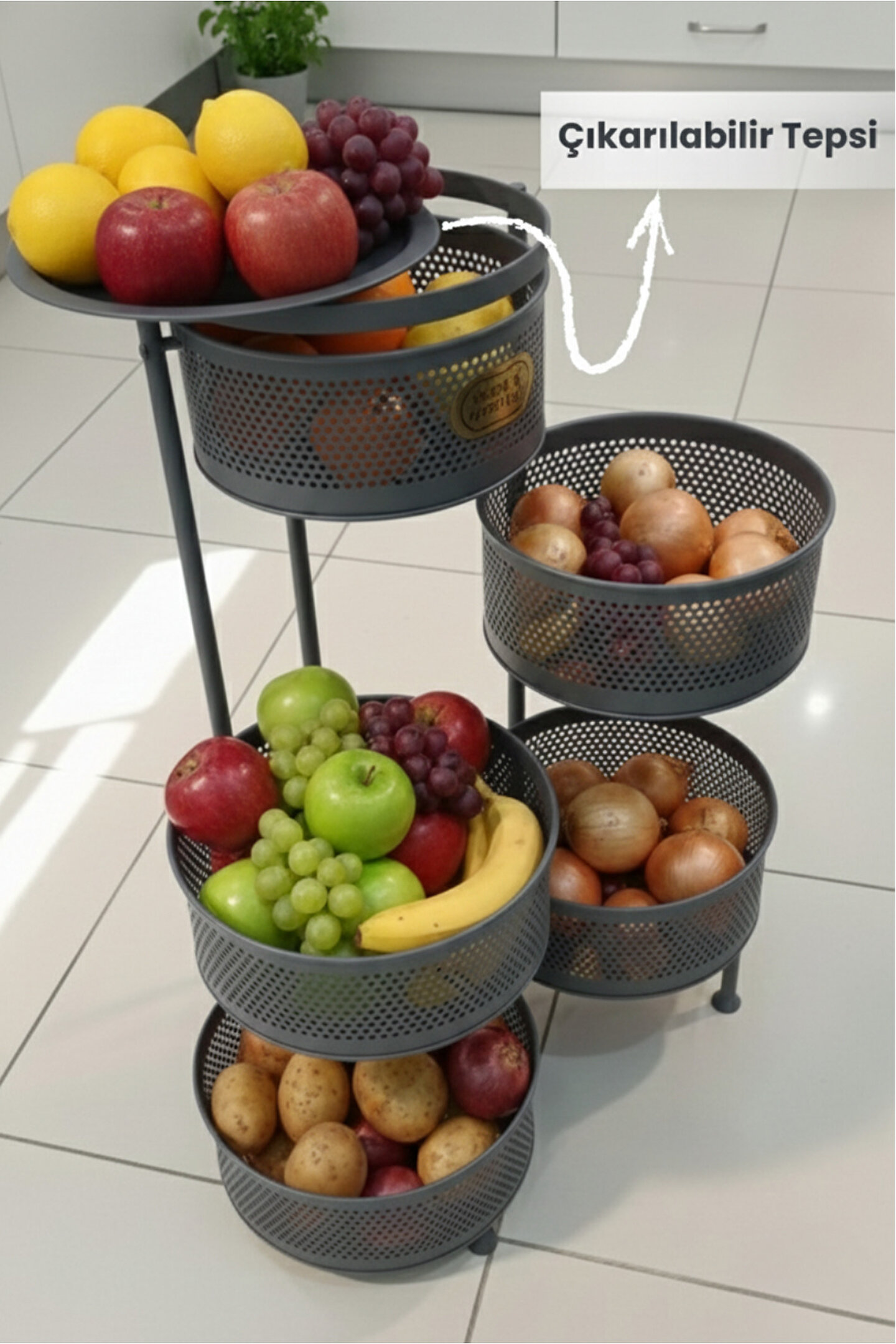 Ölçüler: Sepetler : 30x30 Cm; Sepet Yüksekliği : 13 cm ; Toplam Yükseklik : Yükseklik : 87 cm; Mutfak tezgâhında ya da evinizin başka alanlarında ekstra depolama alanına ihtiyaç duyanlar.; Sebze ve meyvelerini düzenli şekilde saklamak isteyenler.; Evleri küçük olan, alanı verimli kullanmak isteyenler.; Kolayca hareket ettirip gerektiğinde sabitlemek isteyen kullanıcılar.;