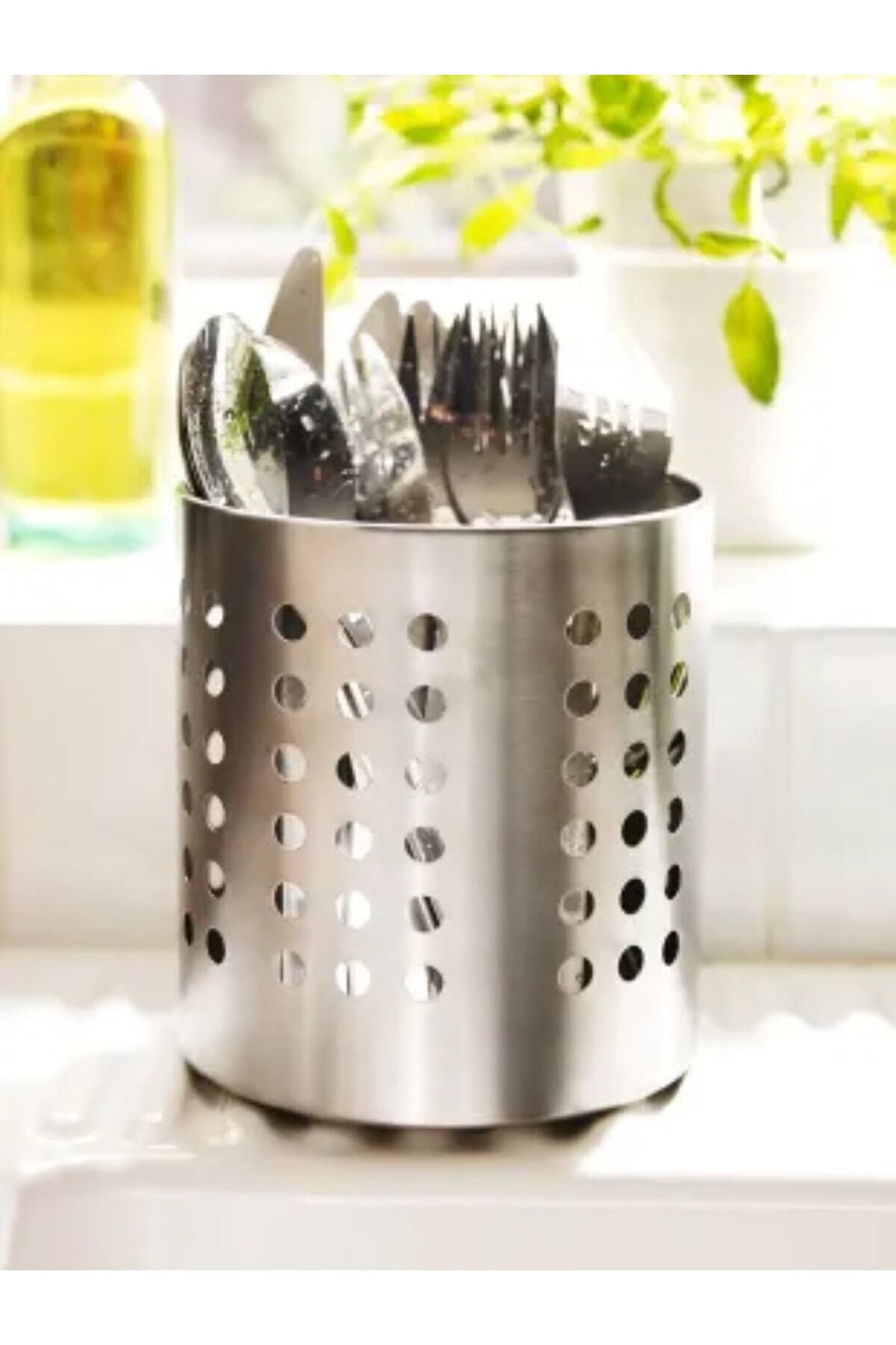 Paslanmaz çelik malzemesi sayesinde uzun ömürlü kullanım sunar ve dayanıklılığı ile öne çıkar; Delikli tasarımı, çatal, bıçak ve kaşıklarınızın düzenli bir şekilde saklanmasını sağlar, mutfakta düzeni korumanıza yardımcı olur; A kalite metal yapısı ile hem şık hem de fonksiyonel bir mutfak aksesuarı olarak dikkat çeker;