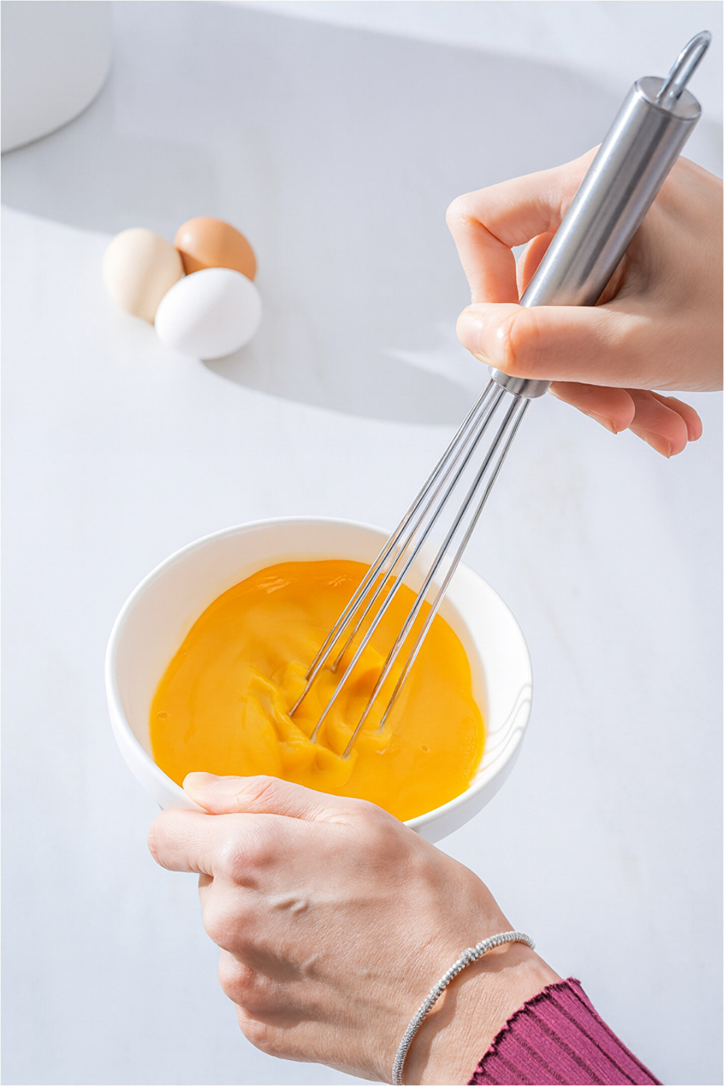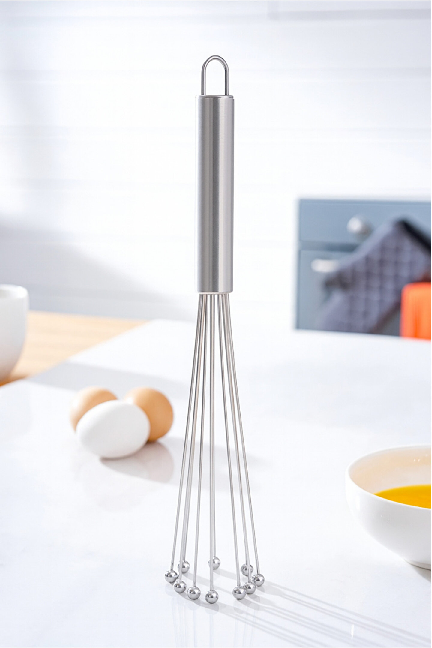 Top uçlu çırpıcı, mutfakta hem profesyonellerin hem de ev kullanıcılarının çırpma, karıştırma ve homojenleştirme işlemlerini çok daha kolay ve hızlı şekilde yapabilmesi için özel olarak tasarlanmış yenilikçi bir mutfak aracıdır. ; Paslanmaz çelikten üretilen dayanıklı gövdesi uzun ömürlü kullanım sağlarken, uç kısmındaki metal toplar karışım içerisindeki havayı daha etkili şekilde dağıtarak çok daha pürüzsüz ve kıvamlı sonuçlar elde etmenize yardımcı olur. ; Bu top uçlu yapı, geleneksel tel çırpıcılara göre daha hızlı karıştırma performansı sunar ve malzemelerin daha kısa sürede homojenleşmesini sağlar. ; Çorba terbiyesi, yumurta, krema, ganaj, sos, beşamel, pancake–waffle harcı, tatlı karışımları ve sıcak–soğuk birçok tarifte üstün gösterir. ; Karıştırma sırasında sıçramayı azaltır, metal topların yuvarlanarak karışım içinde hareket etmesi sayesinde daha az güç harcarsınız. ; Ergonomik sap tasarımı ise elinizde kaymadan sağlam bir tutuş sağlar ve uzun süreli kullanımlarda bile yorgunluk hissini minimuma indirir. ; Hijyen açısından güvenli olan çırpıcı, gıda temasına uygun yapısıyla kolay temizlenebilir ve bakımı zahmetsizdir. ; Tasarımı sayesinde yüzeylerde iz bırakmaz, kapların kenarlarına zarar vermez. ; Modern, şık ve minimalist görünümü mutfak ekipmanlarınızla uyum sağlar; düzenli kullanımda formunu kaybetmeyen sağlam yapısı sayesinde uzun yıllar mutfağınızda yer alır. ; Hem günlük tariflerde hem de detay gerektiren özel yemeklerde mükemmel sonuçlar isteyenler için ideal bir mutfak yardımcısıdır.
