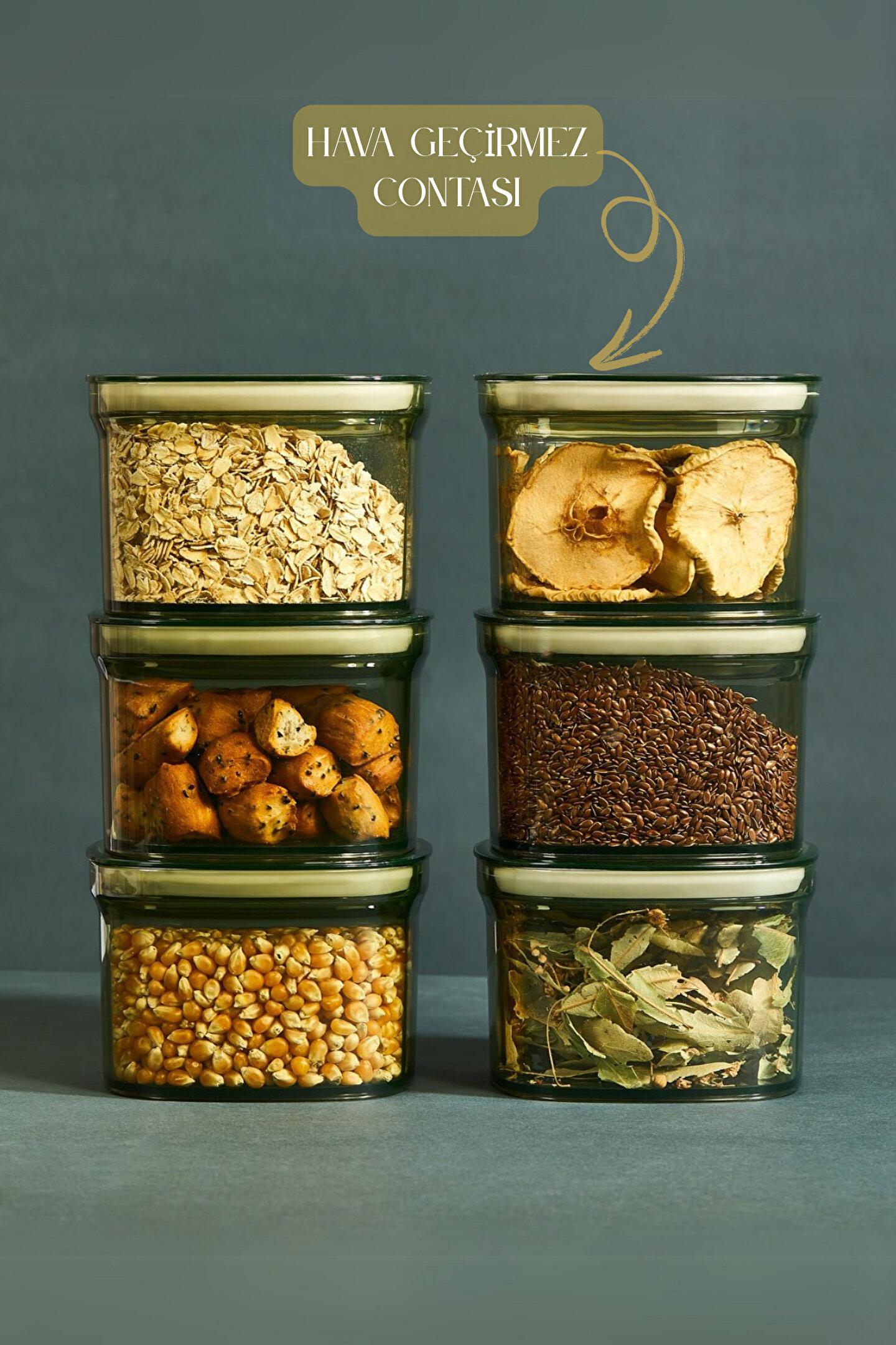 Orvila Premium 6 Adet Sızdırmaz Contalı Erzak Bakliyat Saklama Kabı Yeşil