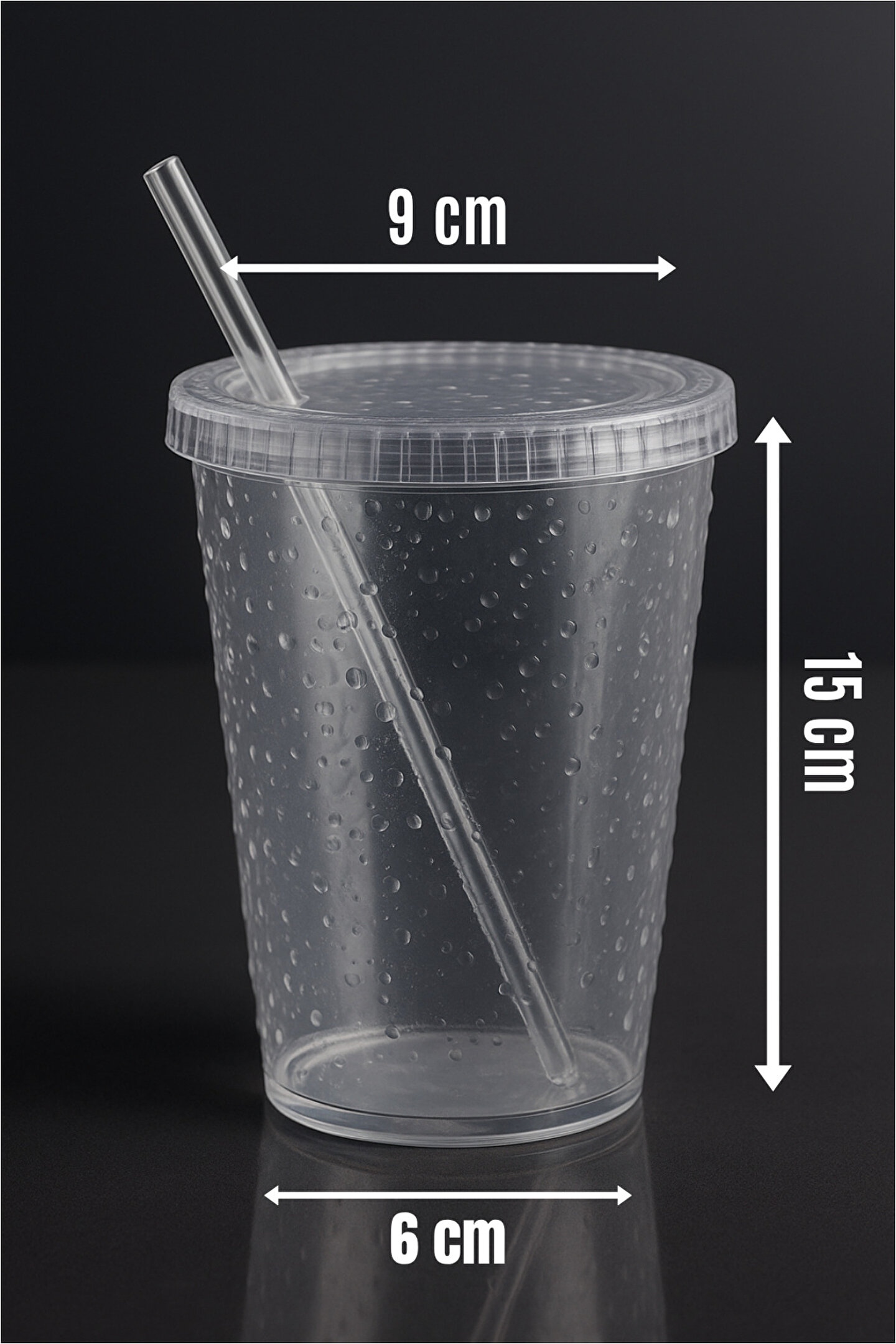 Şeffaf pipetli plastik bardak; günlük kullanıma uygun, şık ve ergonomik tasarımıyla dikkat çeker; 500 ml kapasitesi sayesinde kahve, limonata, smoothie, soğuk çay ve gazlı içecekler gibi tüm soğuk içecekler için idealdir; dayanıklı plastik yapısı sayesinde uzun ömürlü kullanım sağlar; kapaklı yapısı sayesinde dökülmeleri önler ve hijyenik taşımaya imkân tanır; pipetli olması pratik içim kolaylığı sunar; su damlacıklı yüzey deseni estetik bir görünüm kazandırır; şeffaf gövdesi içeceğin rengini göstererek modern bir sunum sağlar; ofiste, evde, piknikte veya arabada kullanım için uygundur; sıcak içeceklerle kullanılması önerilmez; kolay temizlenebilir yapısıyla günlük yaşamda pratik bir alternatiftir; elde yıkanması tavsiye edilir.;