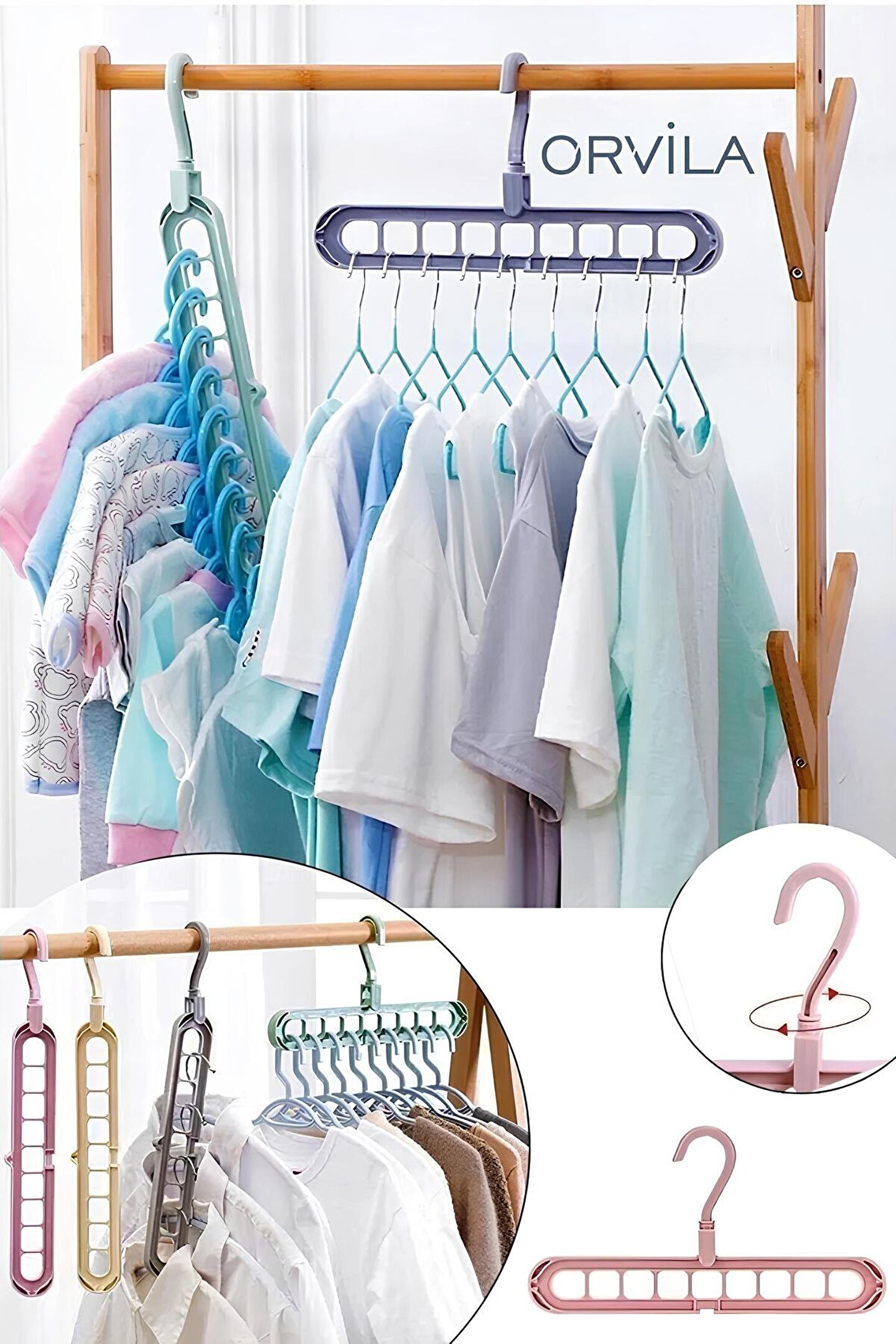 Plastik malzemeden üretilmiştir. Paket içeriği 1 adettir. ; ; 9 bölmeye sahiptir. ; ; Organize edici, düzenleyicidir. ; ; Tişört, gömlek, elbise, ceket, pantolon ve diğer her kıyafet için kullanılabilir. ; ; Dönebilen askısı sayesinde dikey veya yatay kullanabilirsiniz. ; ; Bu dolap içi düzenleyici sihirli askının bölmeleri sayesinde üst üste veya yan yana 9 askı asabileceksiniz. ; ; Çok fonksiyonlu tasarıma sahip bu sihirli askı ile dolabınızın içinde yer tasarrufu sağlayabilirsiniz. ; ; Pratik kullanıma sahiptir. ; ; Dolabınızın içini istediğiniz gibi organize edebilme şansınız olacaktır. ; ; Ölçü: 33cm ; Asorti renklerde gönderilecektir.; ;