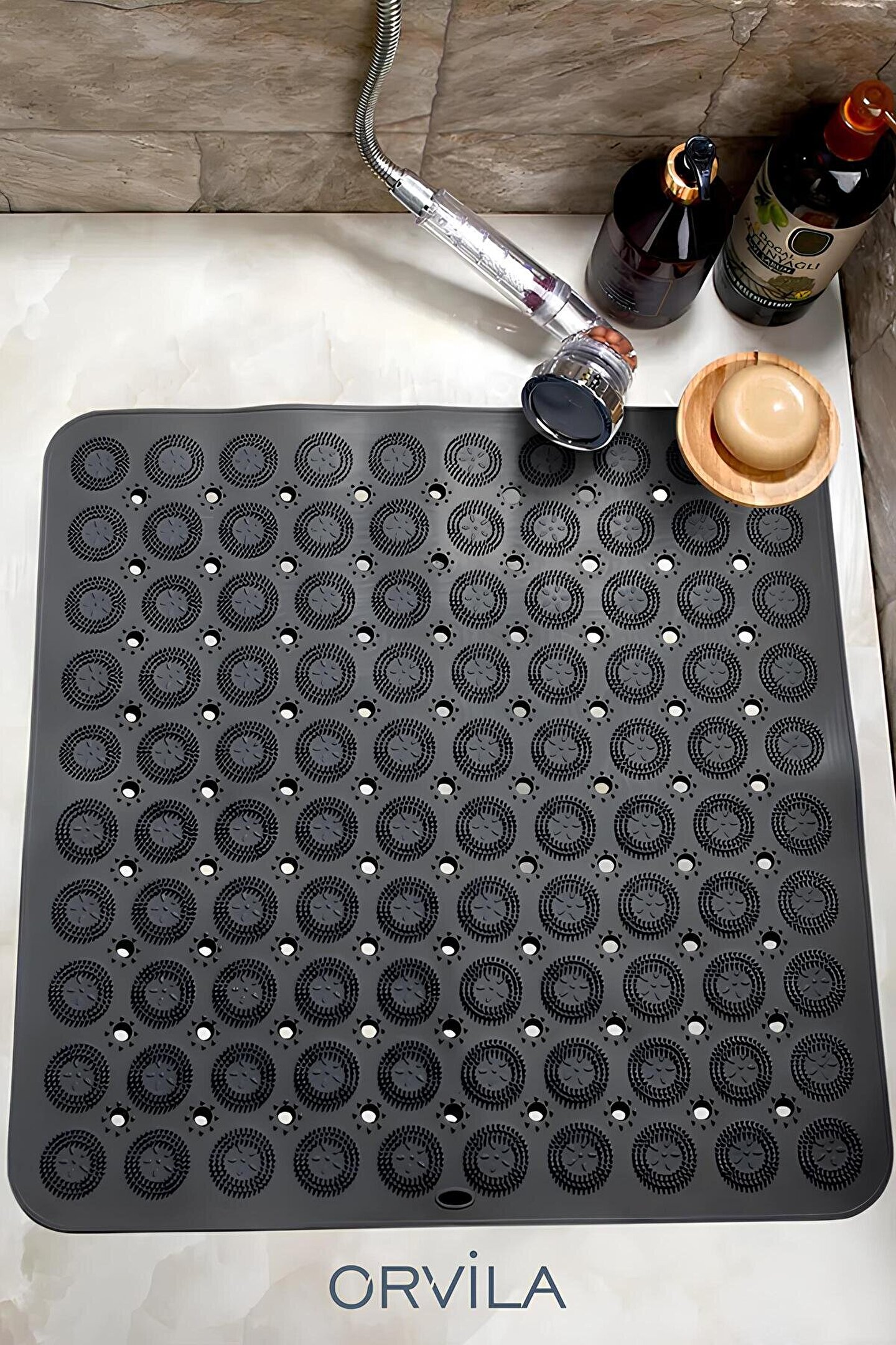 Silikon Kaydırmaz Taban Masajlı Duşakabin ve Banyo Paspası - Kare Banyo ve Küvet İçi Masajlı Paspas