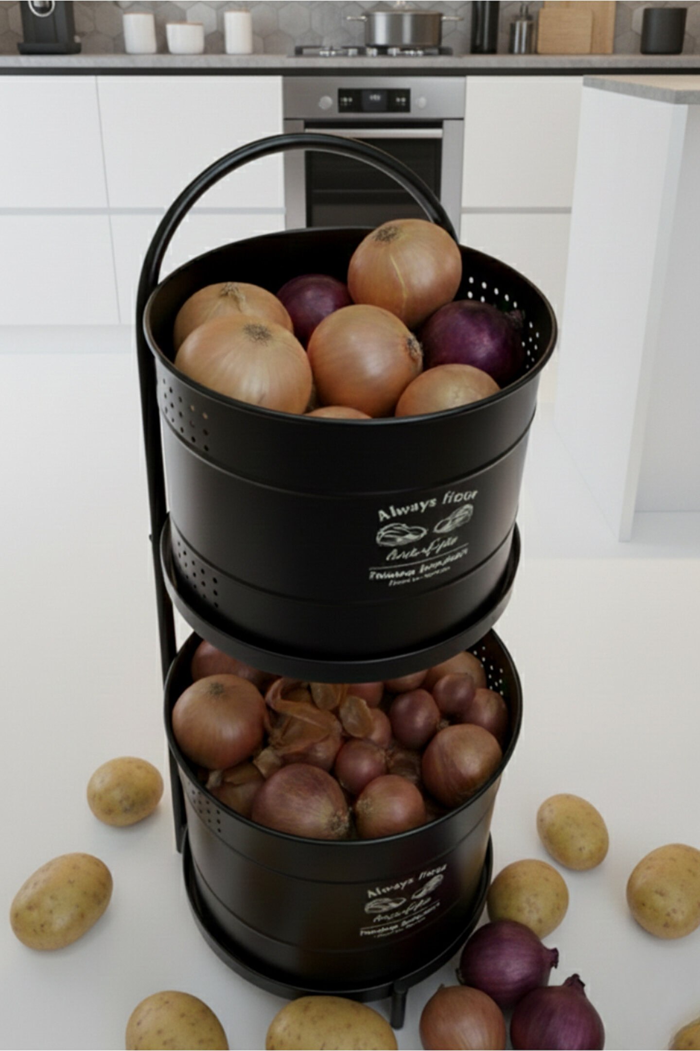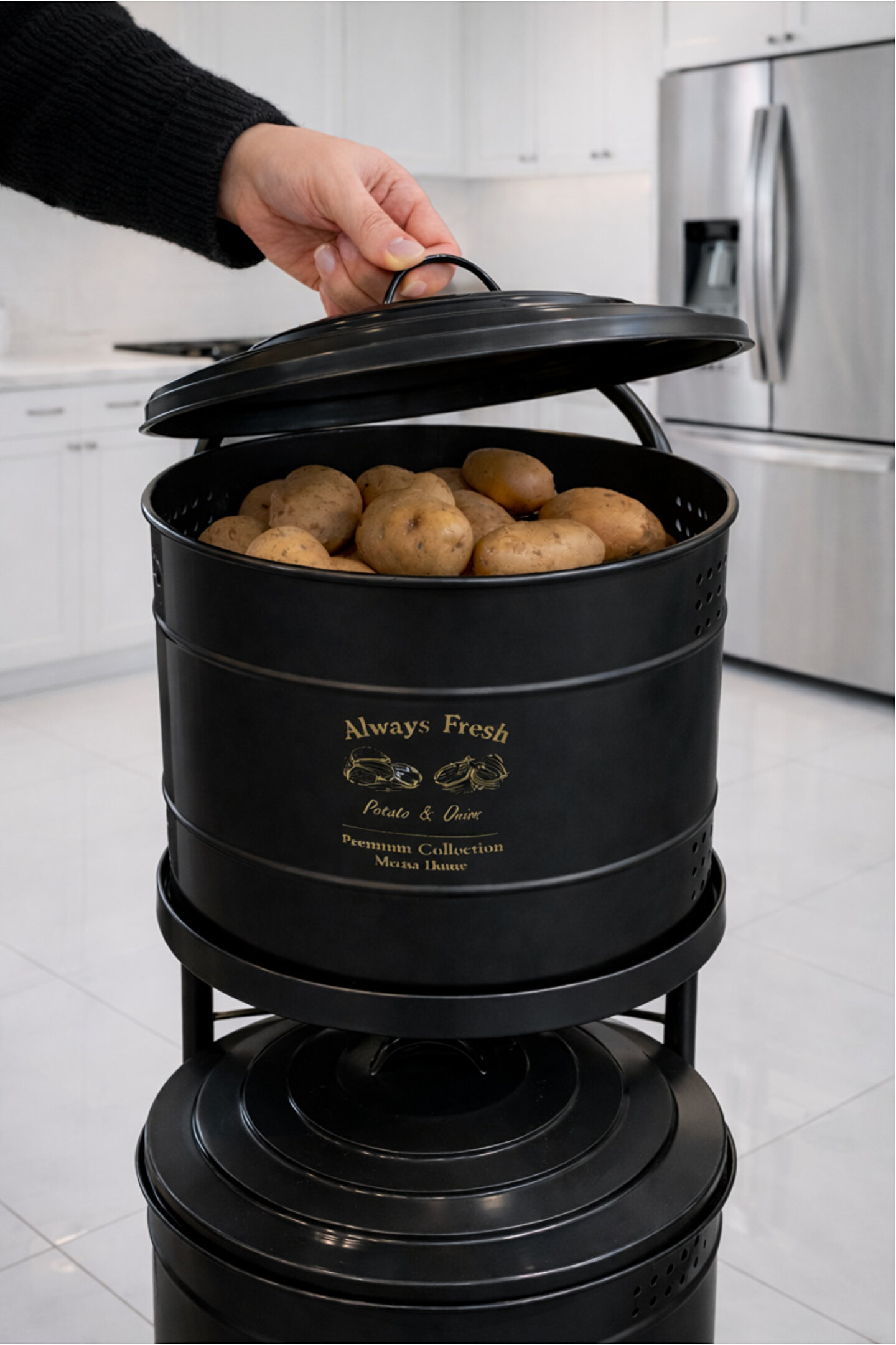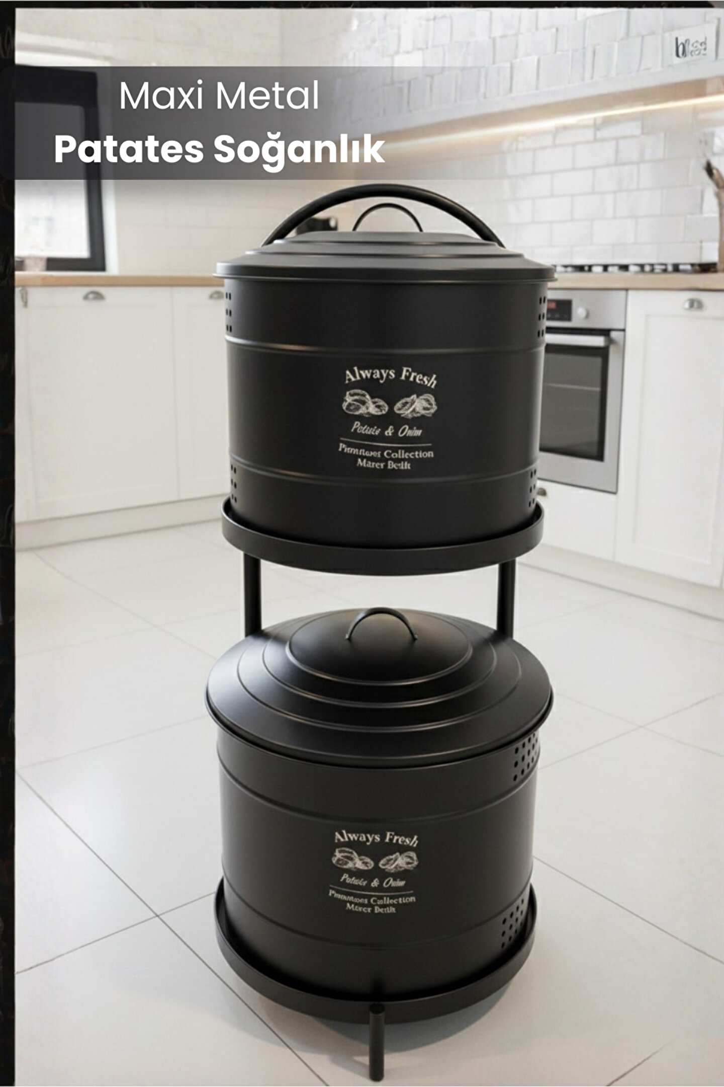 Orvila Siyah Maxi Metal Patates Soğanlık Dev Boy Patates Soğan Saklama Kovası Sebzelik