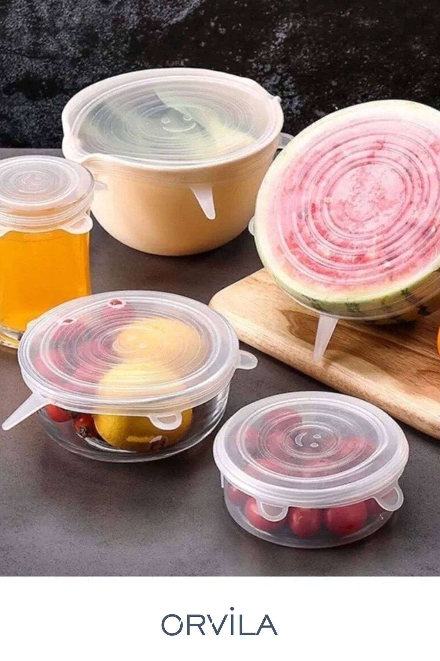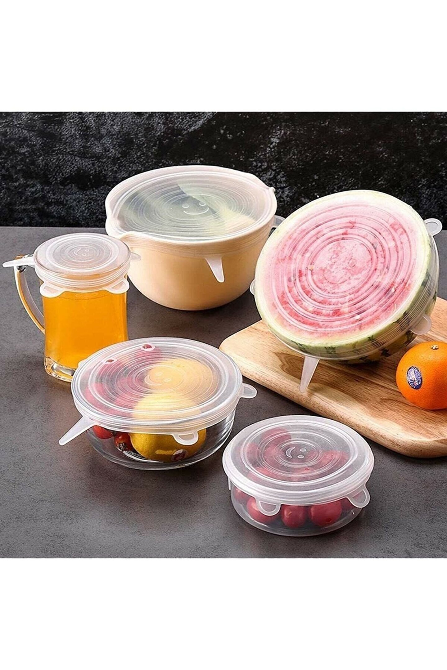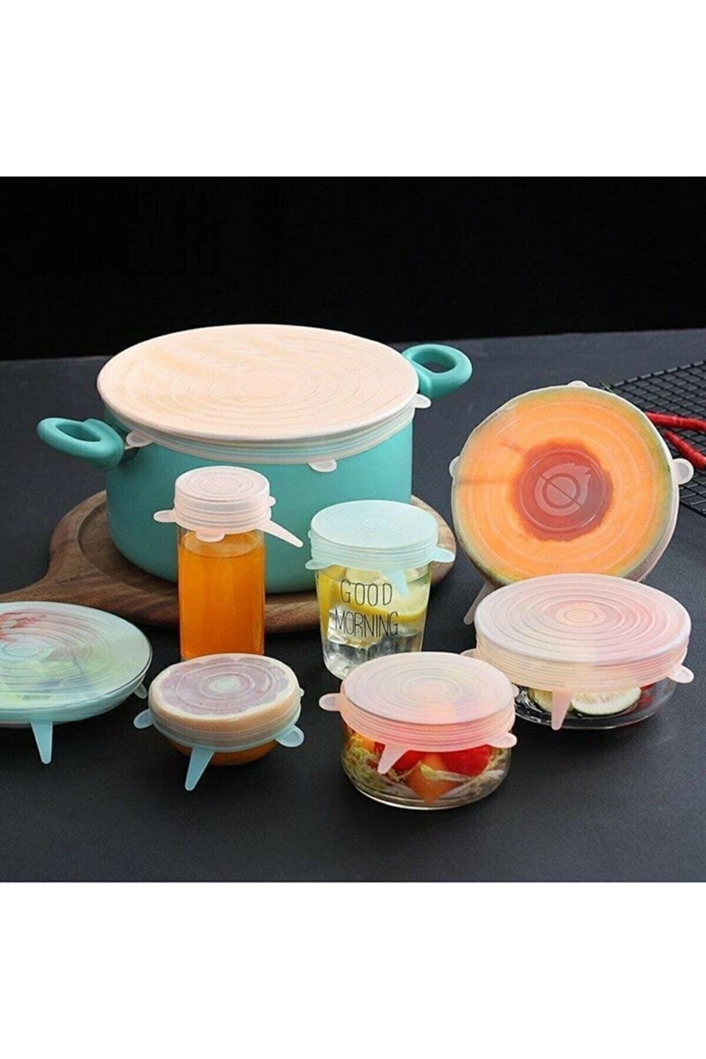 Tazeliği Koruyan Saklama Kabı Kapağı 6'lı Esnek Silikon Strech Kapaklar ; 6'lı Silikon Strech Kapaklar ile yiyeceklerinizi hava almayacak şekilde 6 farklı boyutta olan esnek silikon kapaklar ile muhafaza etmeniz oldukça kolay ve kullanımı çok pratik; Silikon malzemeden yapılmış olması sebebiyle kolayca esneyen bir yapıya sahiptir. Bu durum kapatacağı yüzeyi kolayca sarmasını sağlayacaktır.; Strech mantığı ile iş görmektedir. Strech kullanmanızı gerektiren tüm yüzeylerde pratik bir şekilde kullanabilirsiniz.; Kesildiği için yarım kalan ve hava ile teması sonrası kuruyan bozulmayı bekleyen meyvelerinizin üzerini de bu kapaklarla kapatmanız mümkün.; Böylelikle israfın önüne geçerek ev ekonominize de katkıda bulunabilirsiniz.; Ayrıva kullan at strechlerin görevini gören bir ürün olduğu için strech israfını da sonlandırmış olmaktadır.; Paket içerisinde 6 farklı boyda silikon kapak bulunmaktadır.;