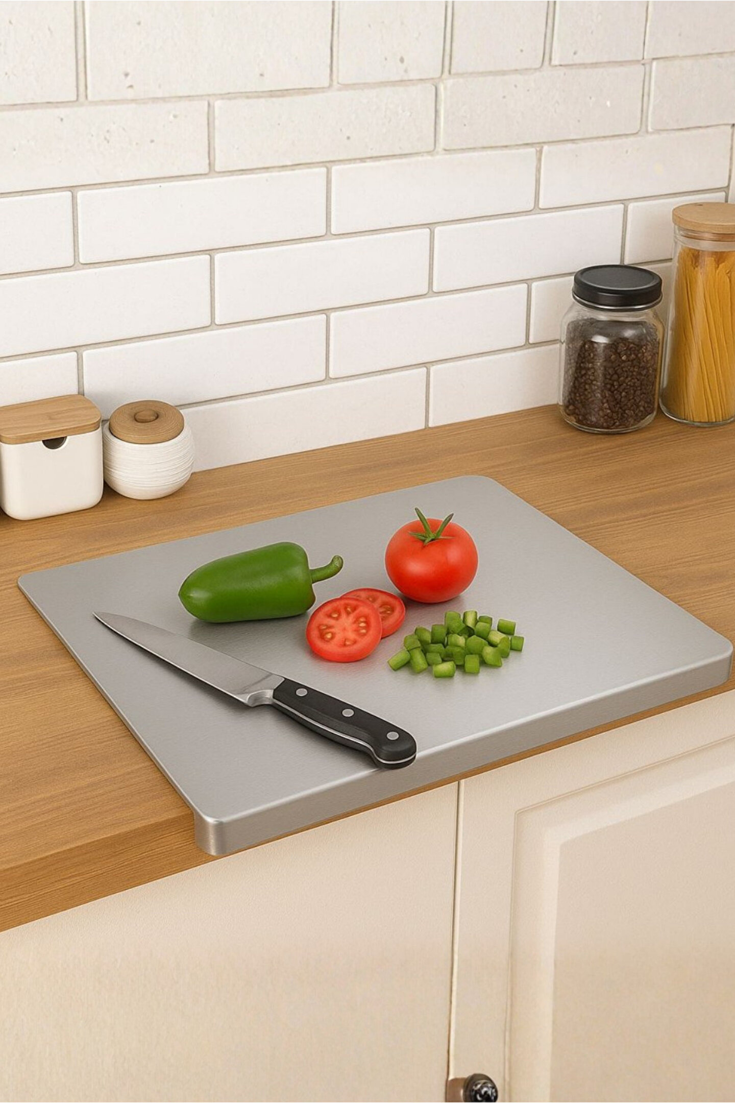Orvila Tezgah Üstü Bükümlü Metal Yoğurma Kesme ve Doğrama Tahtası – Paslanmaz Çelik, Hijyenik 35x45 Cm
